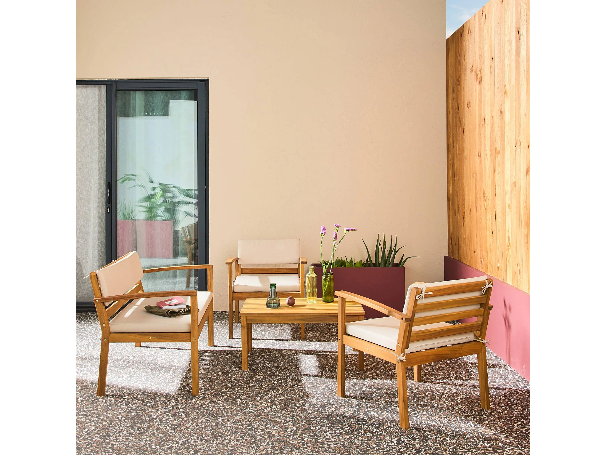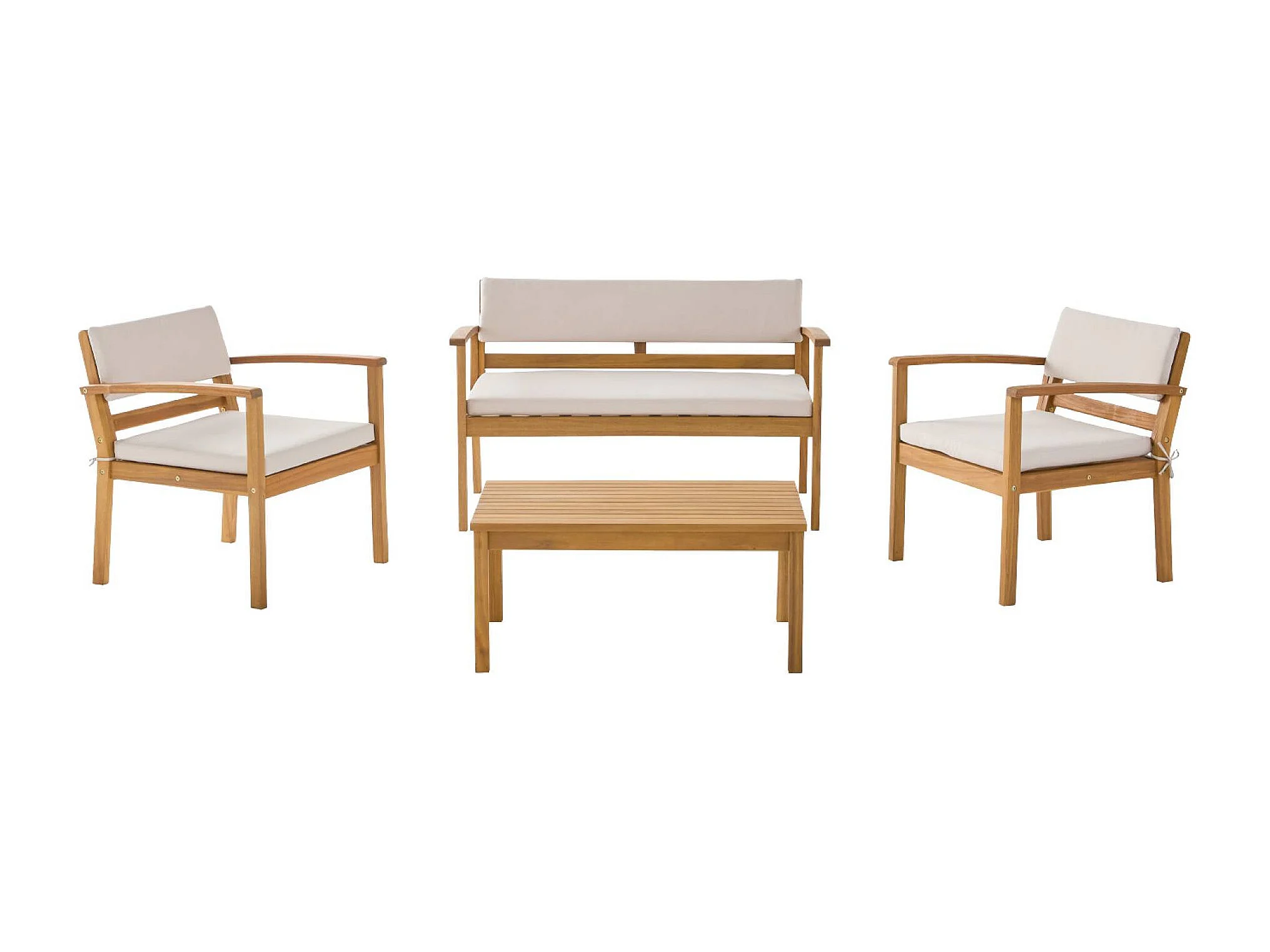 Salotto da giardino in legno di acacia, 4 posti, beige