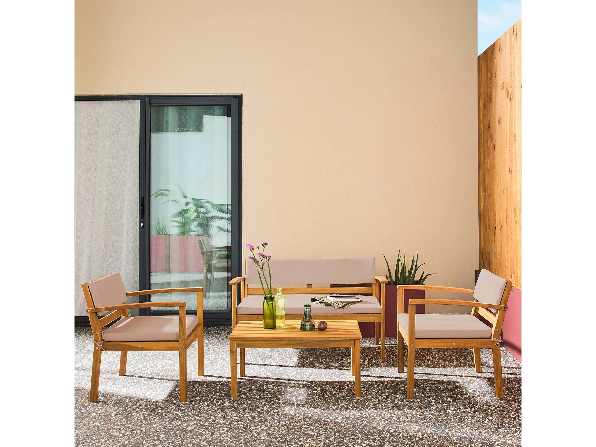 Salotto da giardino in legno di acacia, 4 posti, marrone