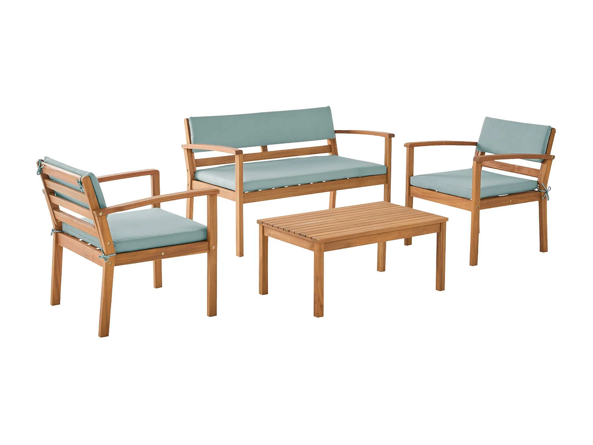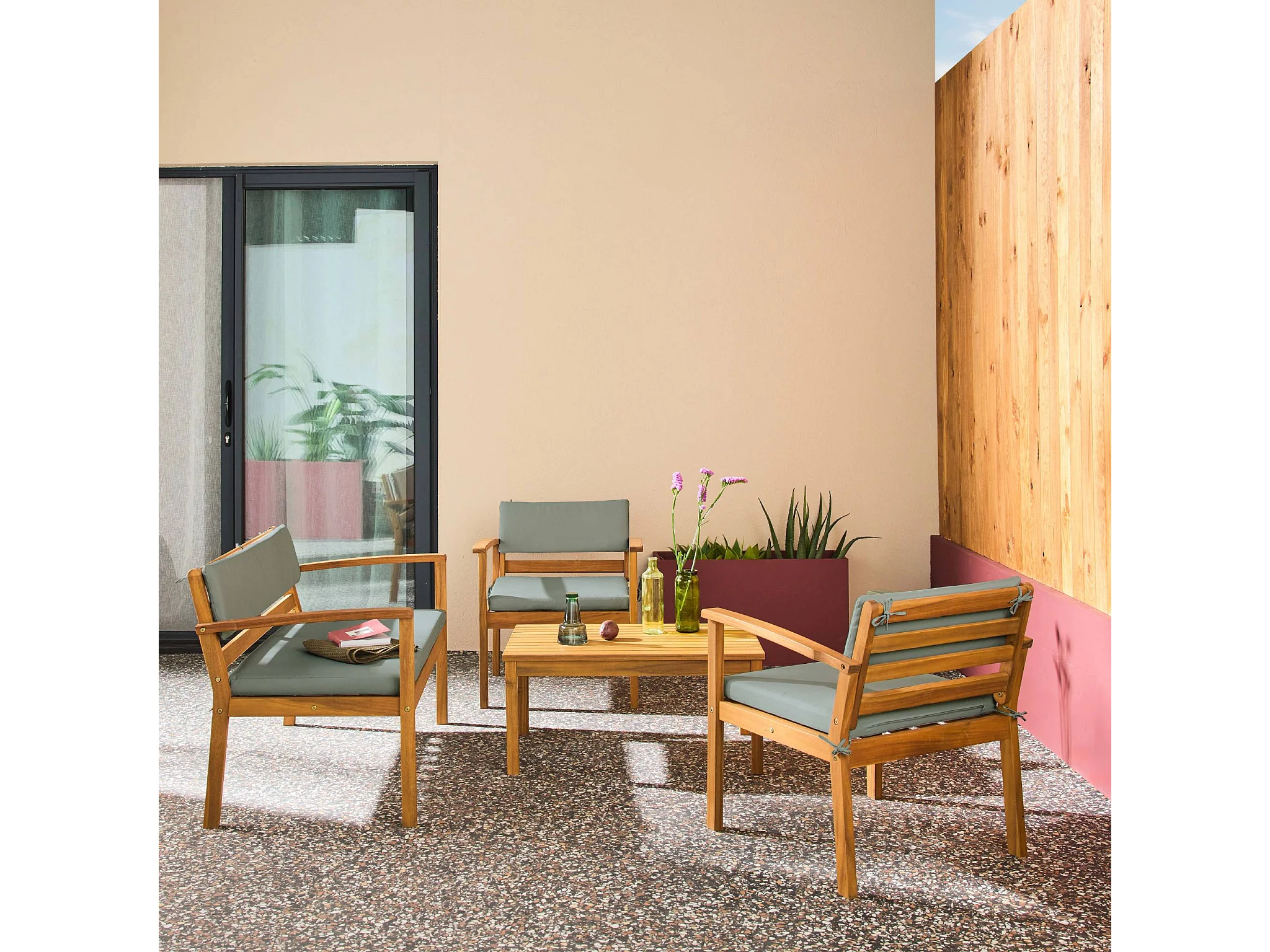 Salotto da giardino in legno di acacia, 4 posti, verde grigio