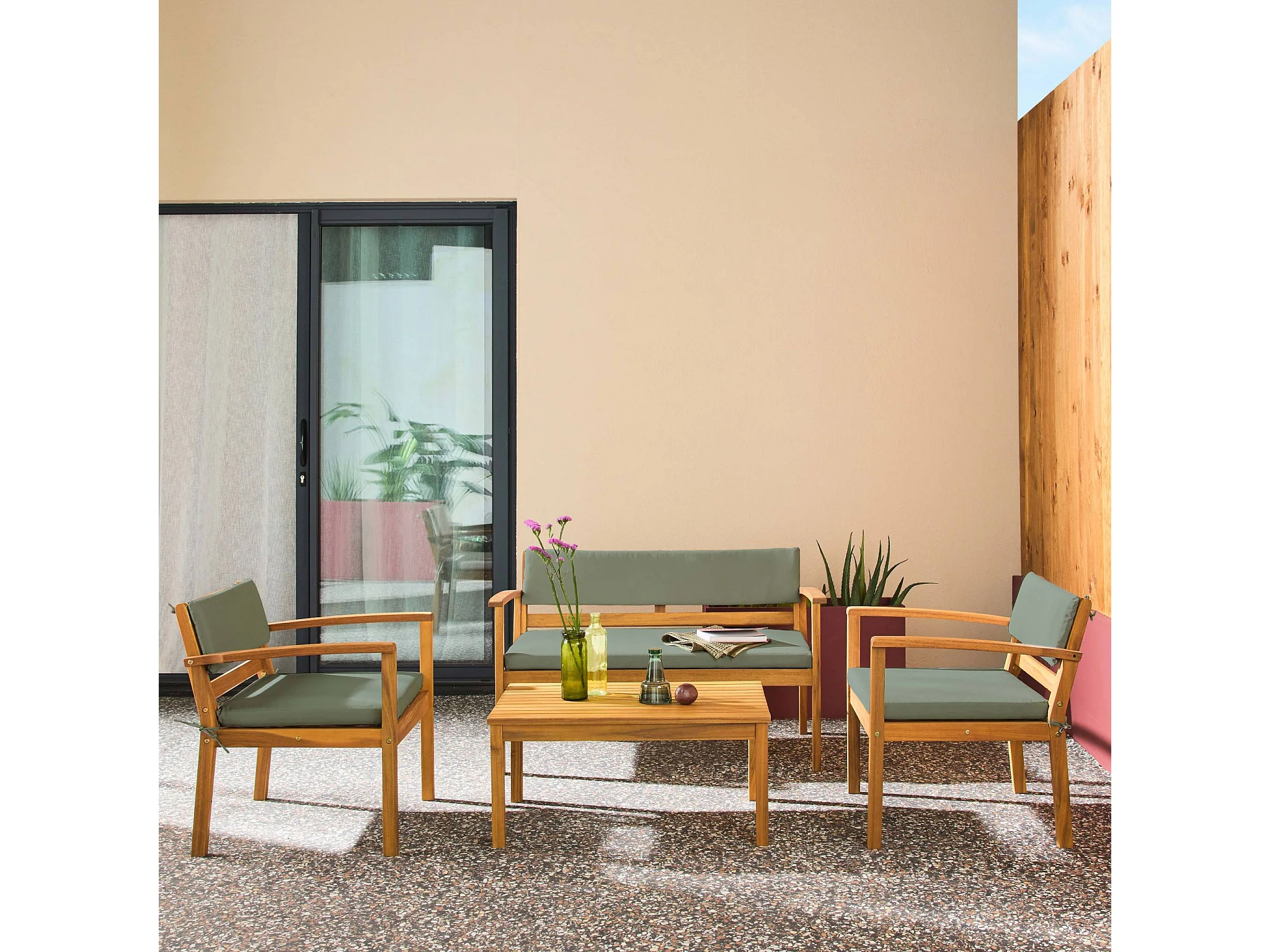 Salotto da giardino in legno di acacia, 4 posti, verde kaki