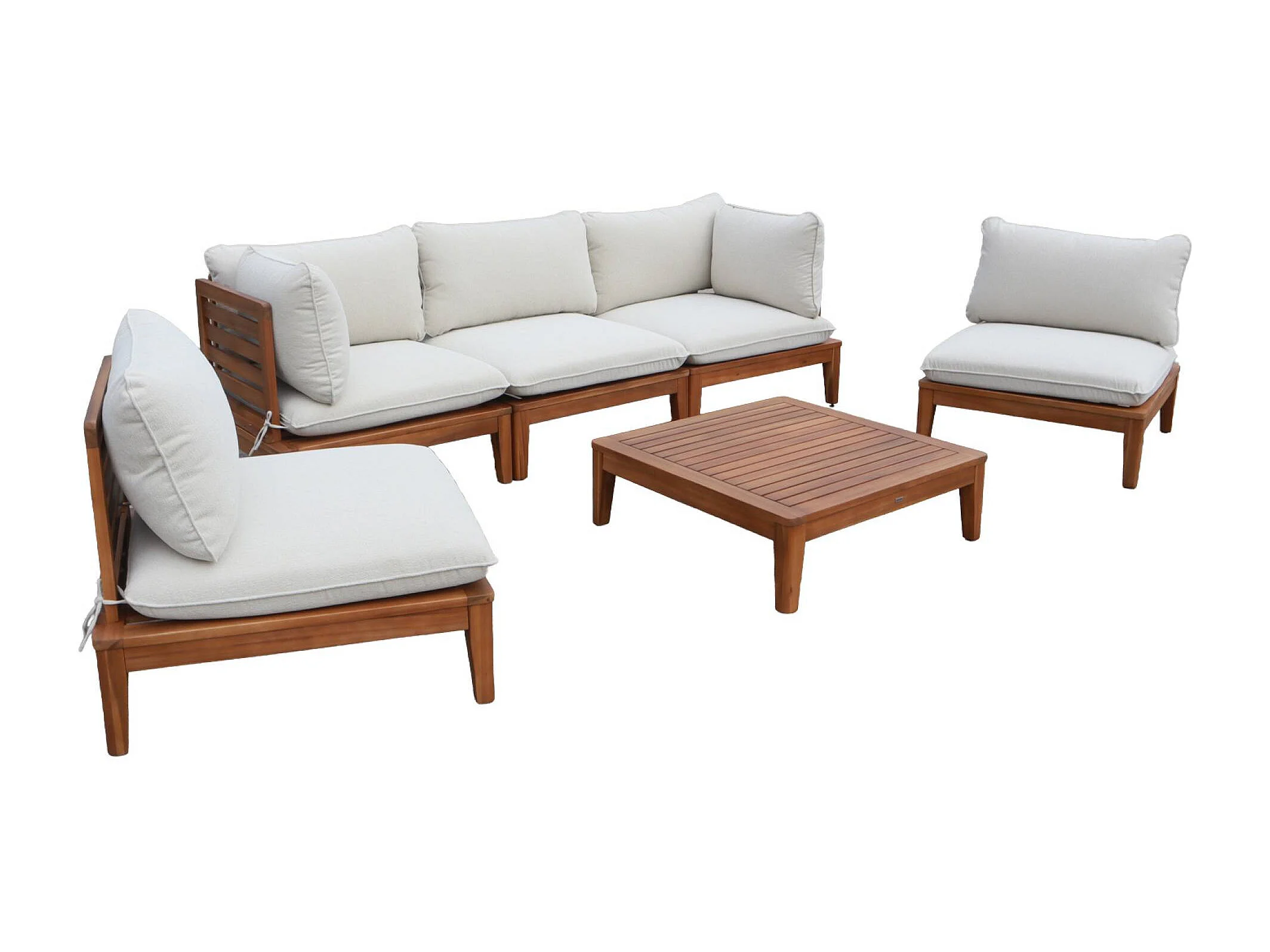 Salotto da giardino in legno di acacia e bouclé, 5 posti, beige