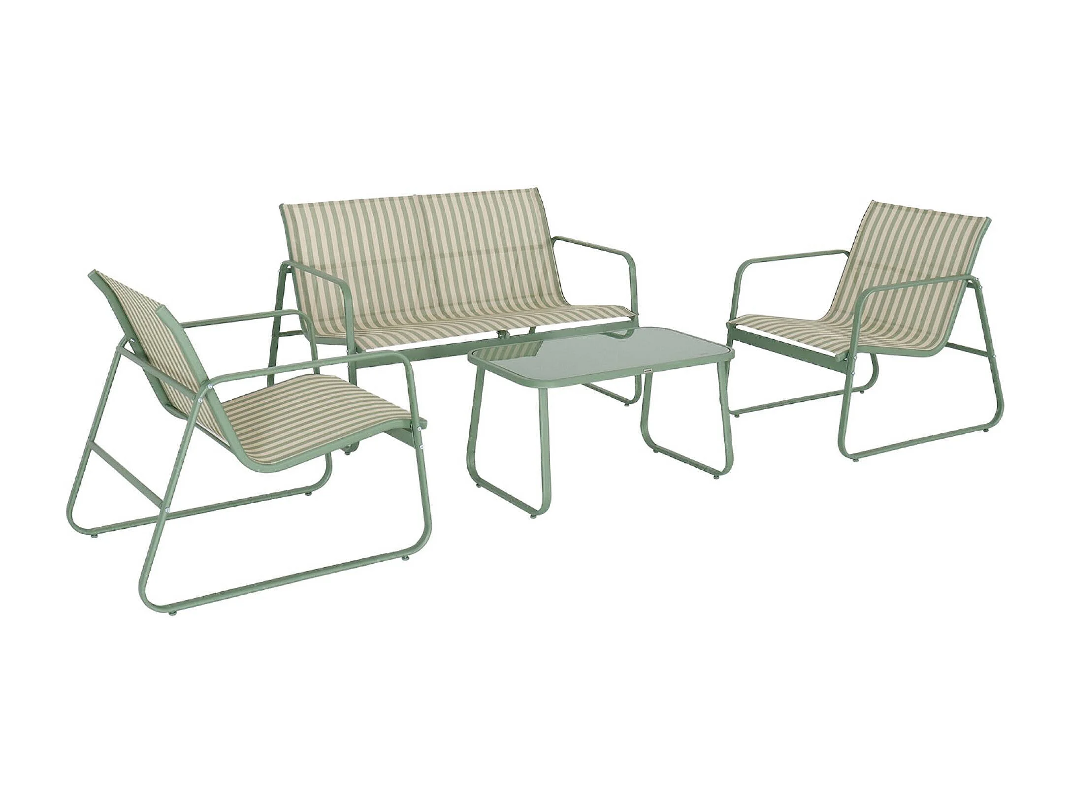 Salotto da giardino in metallo, 4 posti, verde