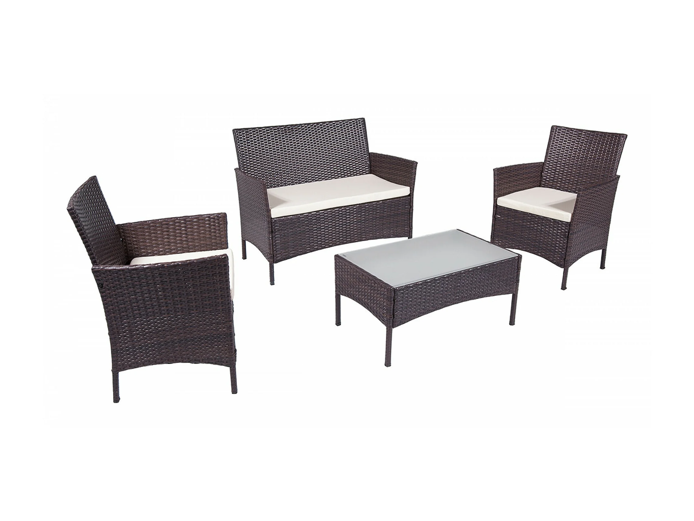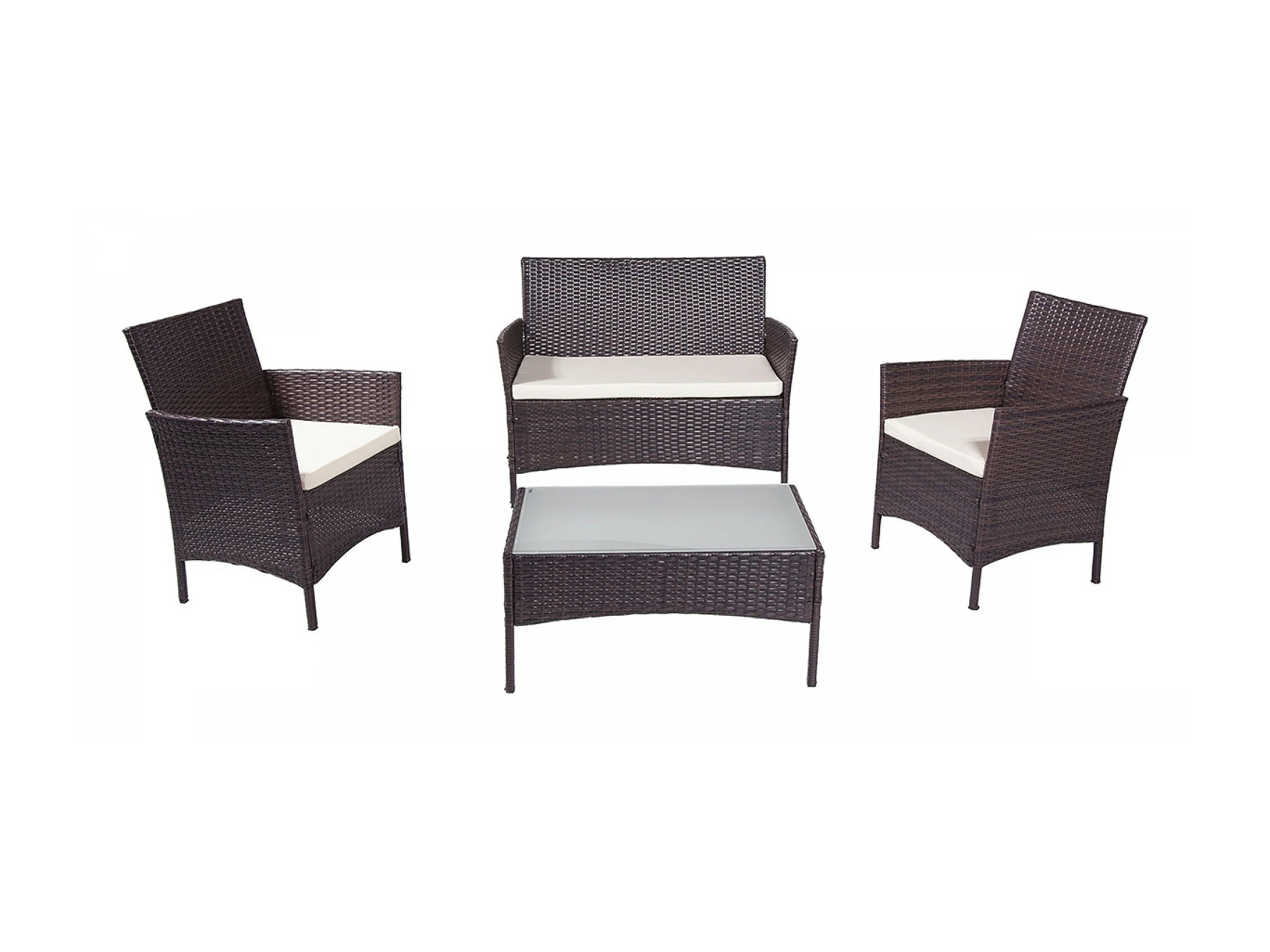 Salotto da giardino in rattan, set in polyrattan da esterno marrone