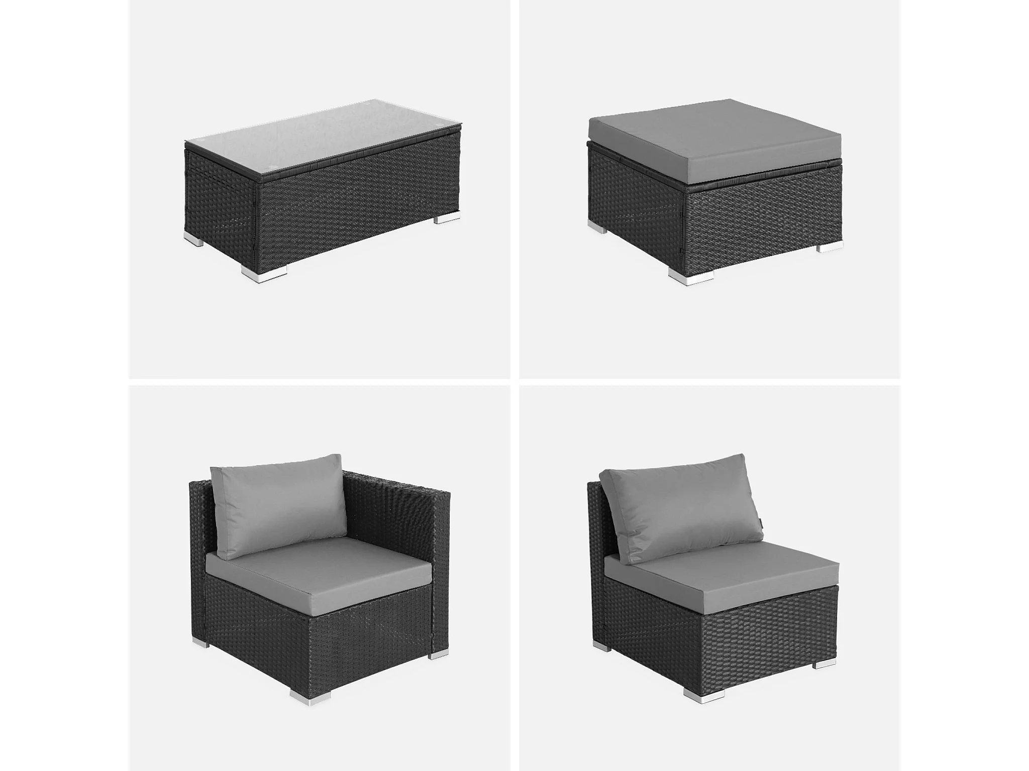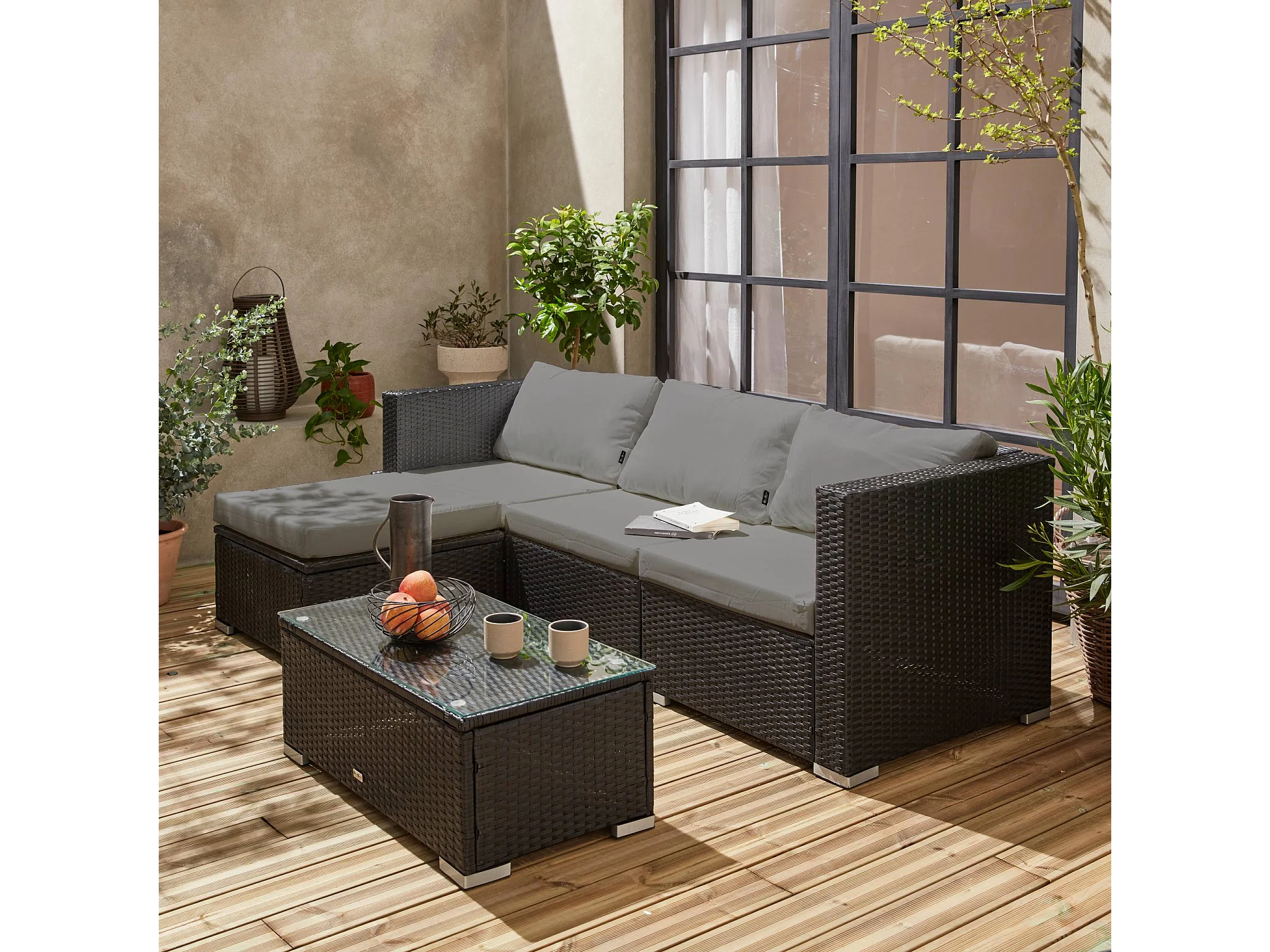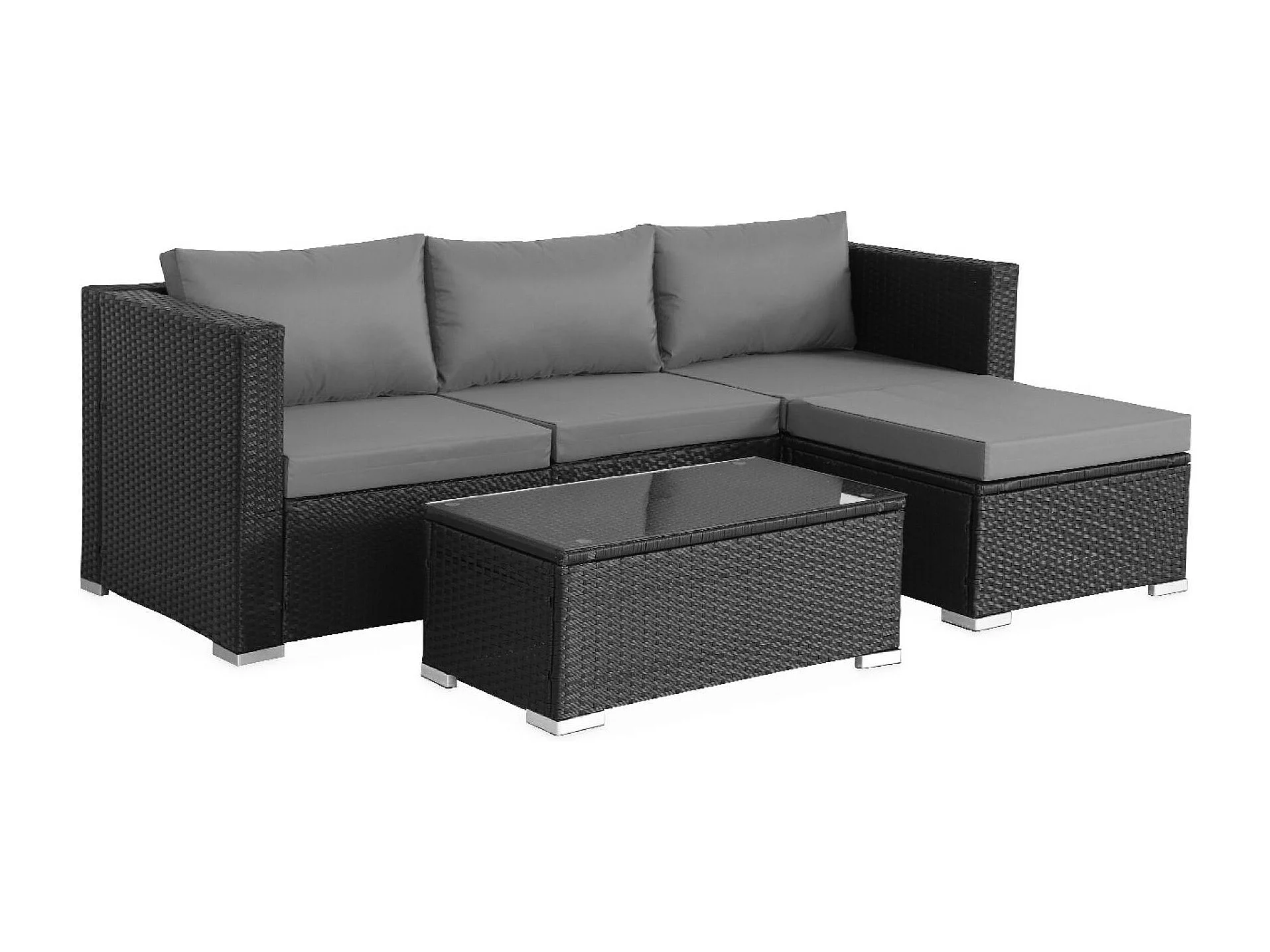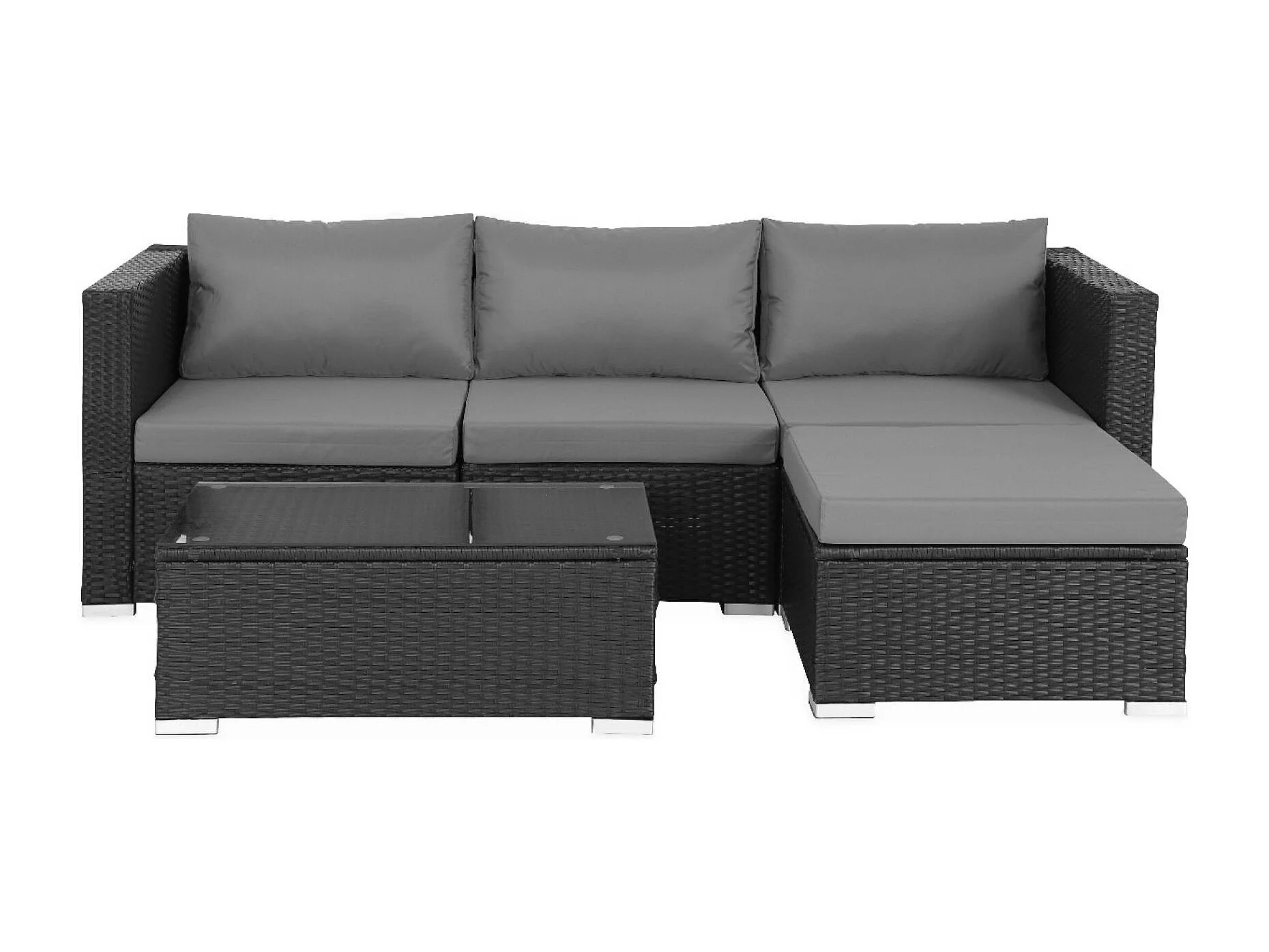 Salotto da giardino in resina intrecciata a 4 posti, nero