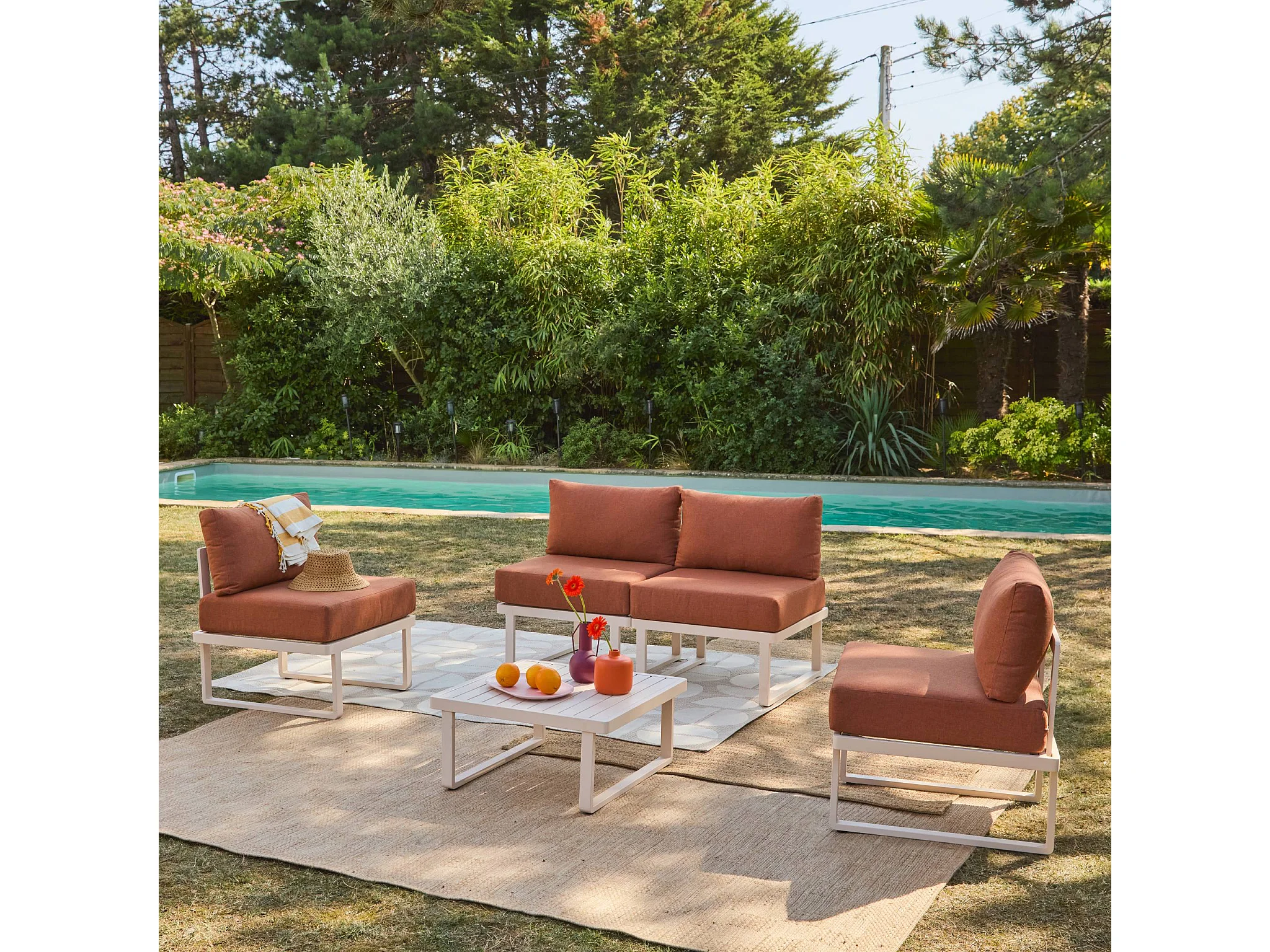 Salotto da giardino modulare in alluminio, 4 posti, terracotta