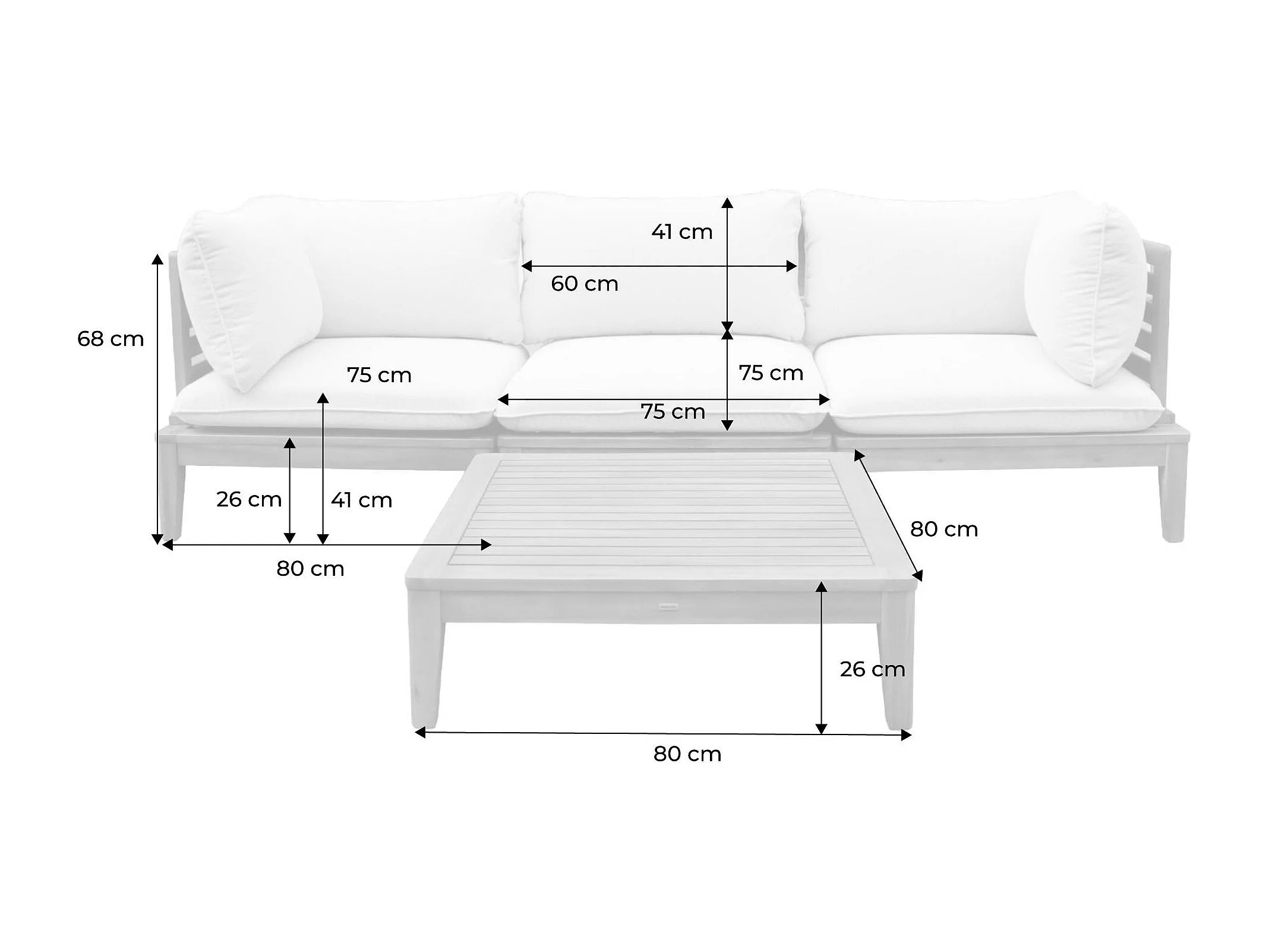 Salotto da giardino modulare in legno di acacia e bouclé, 3 posti,