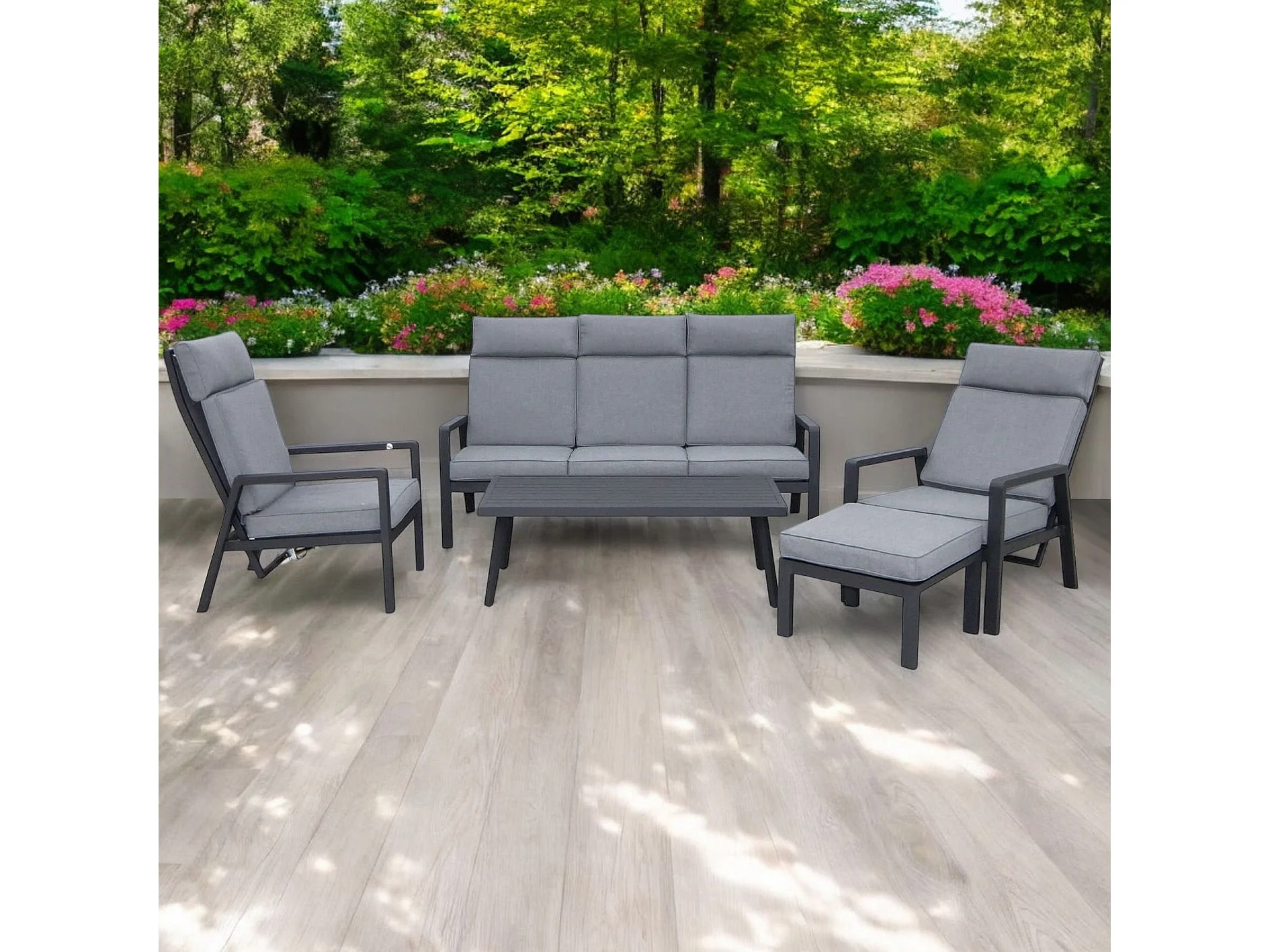 MilaniHome.it - salotto da giardino reclinabile 5 posti di design moderno per esterno di coloreAntracite