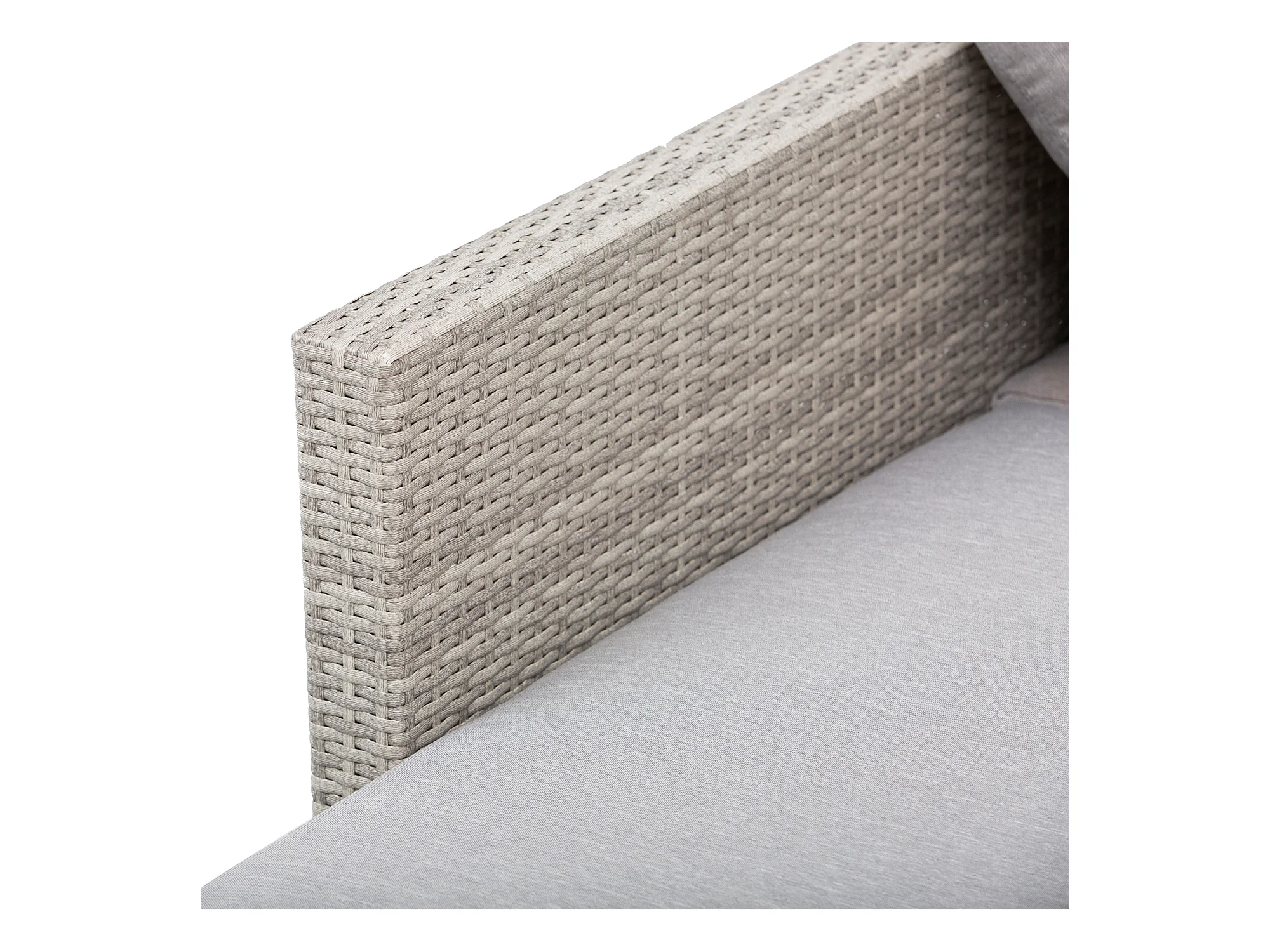 Divano da esterno con braccioli ribaltabili e cuscini in rattan grigio