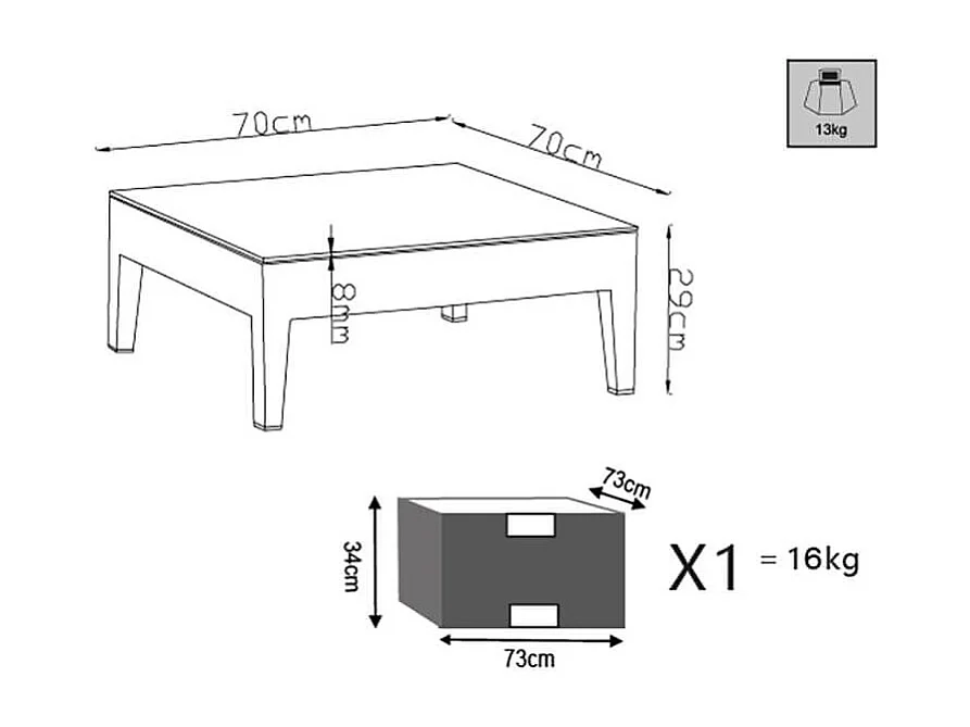Tavolo da Giardino Piano in Vetro Grigio 100x55x73cm Polyrattan