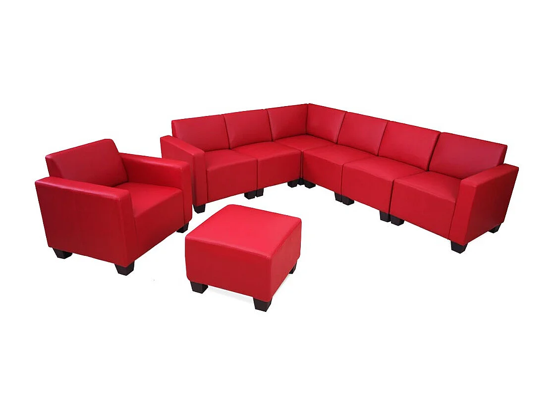 Salotto modulare componibile lounge moderno Lione N71 ecopelle combinazione 6-2 ~ rosso