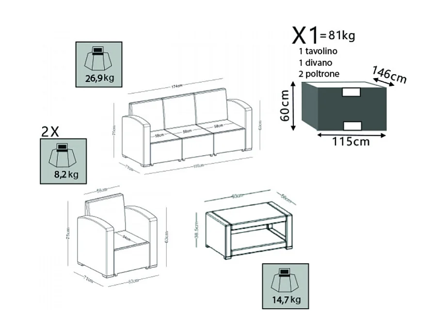 SALOTTO SMONTABILE MAURITIUS 3 P con CUSCINI