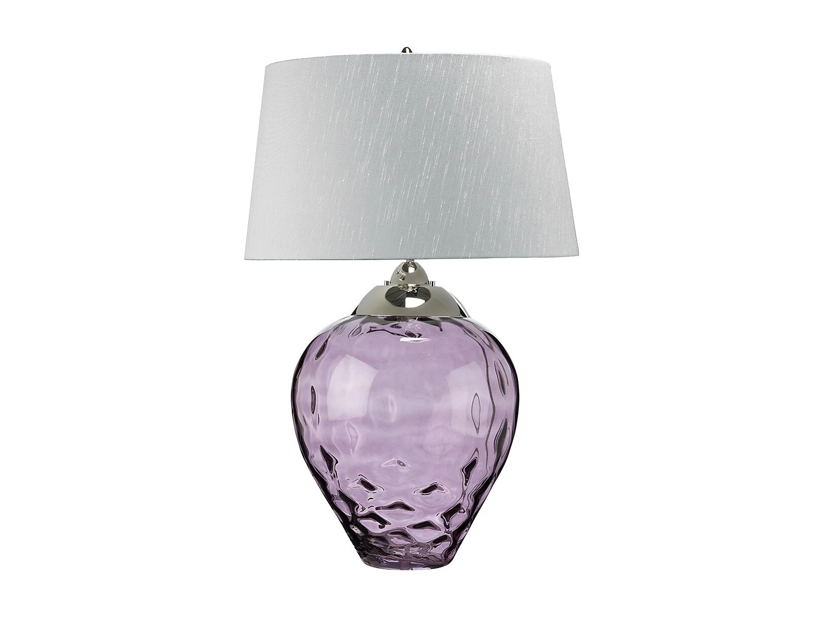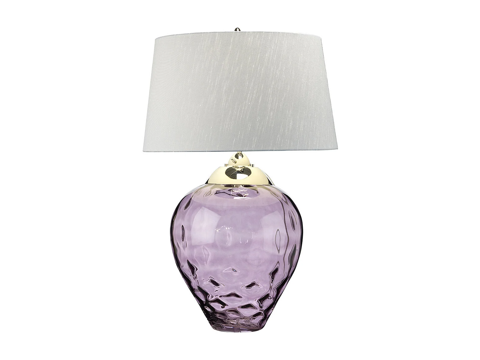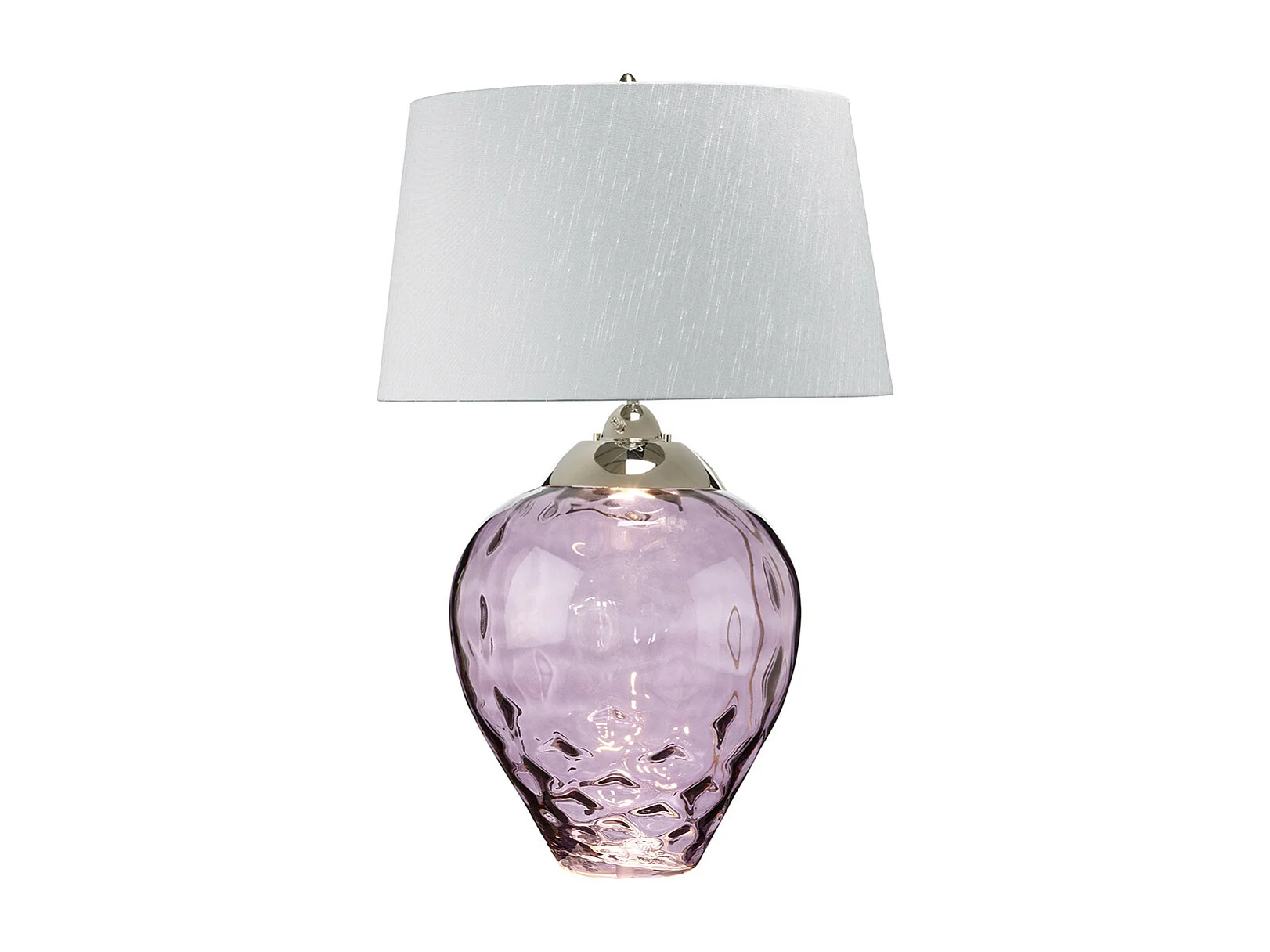 Elstead Lena 2 luci grande lampada da tavolo prugna, vetro color prugna, paralume erica, attacco E27