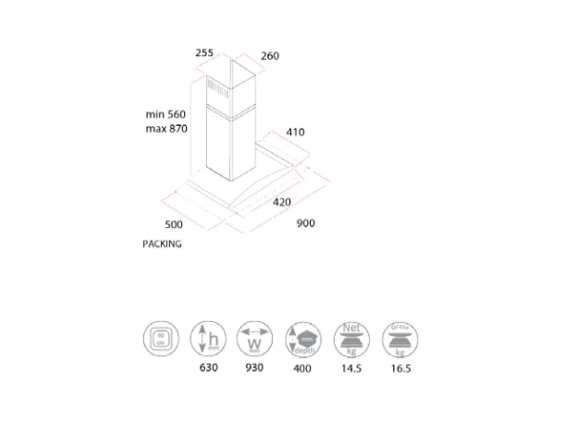 Samet Cappa WETH 90 inox da parete 90 cm cupolino in vetro