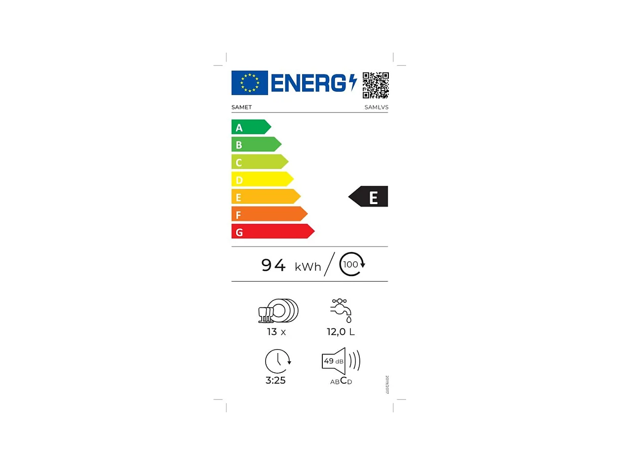 SAMET Lavastoviglie SAMLVS 13 coperti incasso classe E