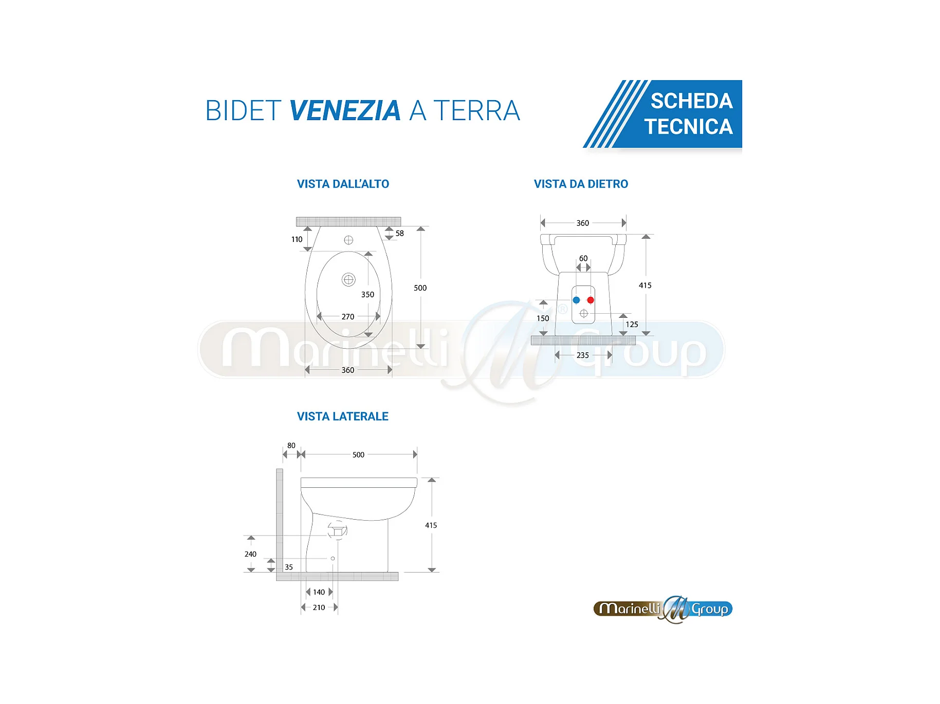 Sanitari bagno Bidet e Vaso WC a terra in ceramica con sedile coprivaso tradizionale - Venezia