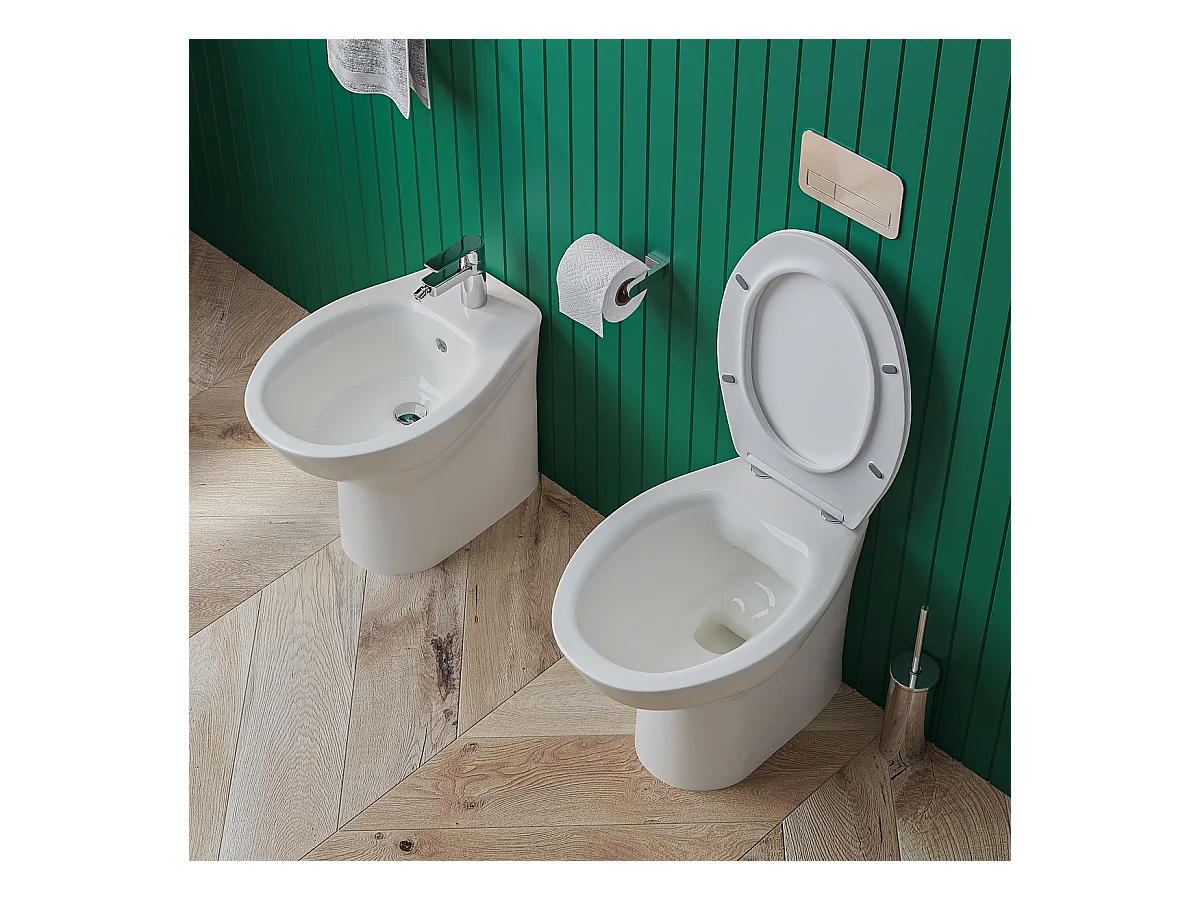 Sanitari bagno Bidet e Vaso WC a terra in ceramica con sedile coprivaso tradizionale - Venezia