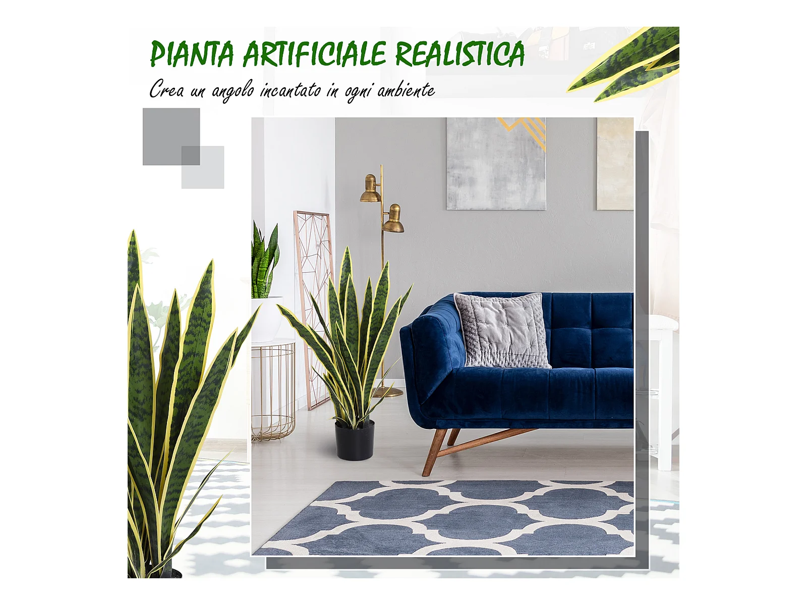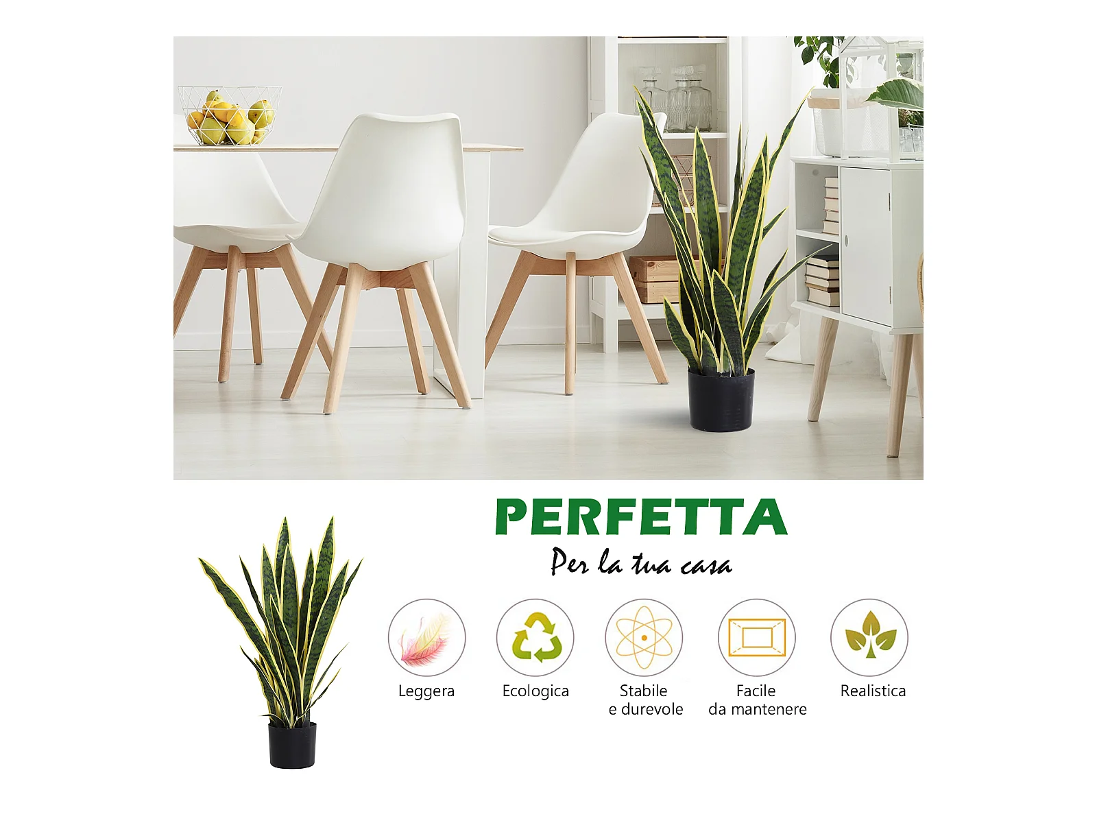 Sanseveria artificiale in vaso in pe verde e giallo