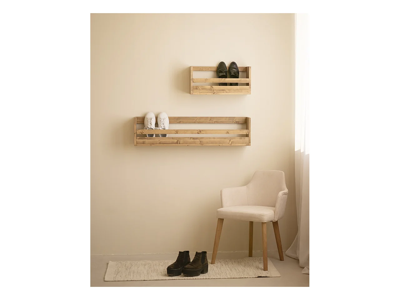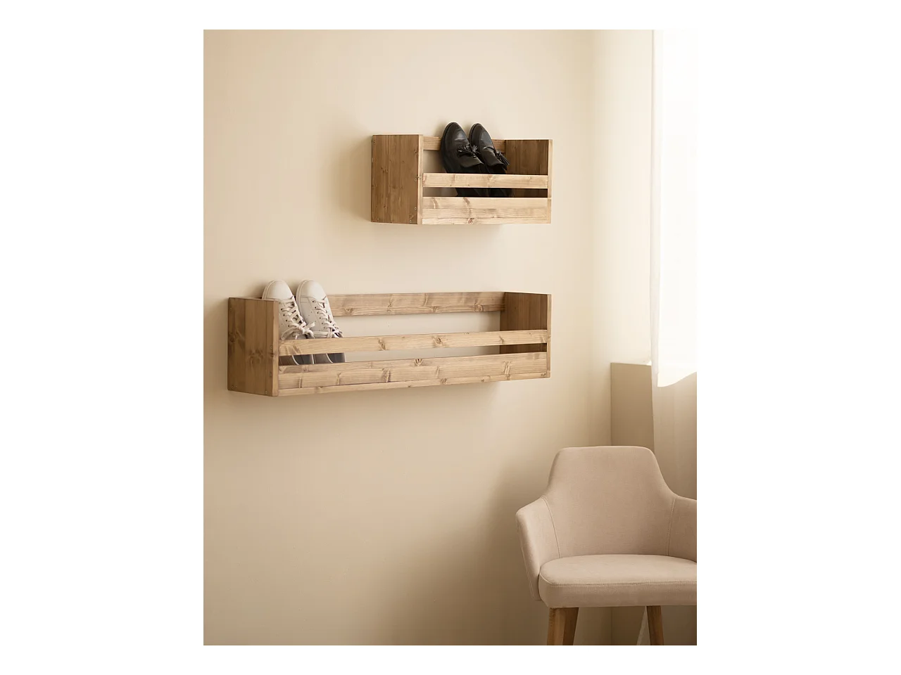 Set 2 scaffale da parete in legno massello tono marrone 60x3,2x20cm - MELVA - DECOWOOD