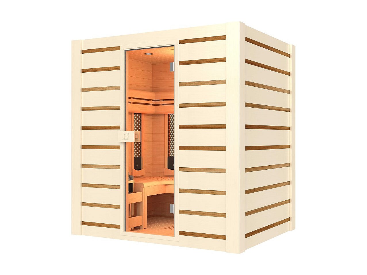 Sauna Hybride Combi Holl's - 180x140x190 cm - 4 posti - In cedro rosso e hemlock - kit completo - Pacchetto completo - stufa da 4,5 kW e pietre incluse