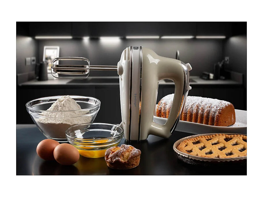 Sbattitore Vintage 450W - 5 velocità - Funzione turbo - 2 fruste - Beige