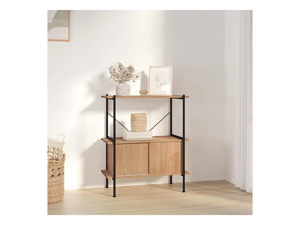 Scaffale Pendente a 3 Livelli Marrone Chiaro e Nero 64x34x116cm