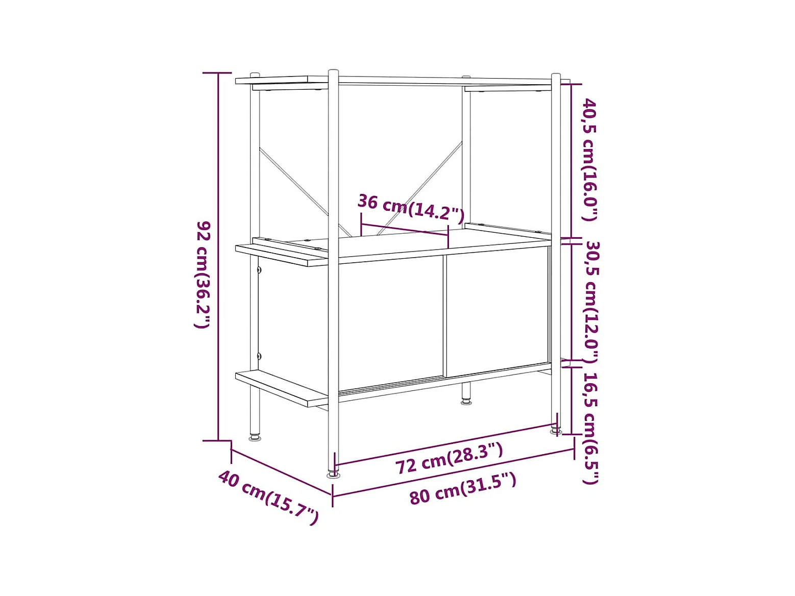 Scaffalatura 3 Livelli con Mobiletto 80x40x92cm Acciaio e Legno