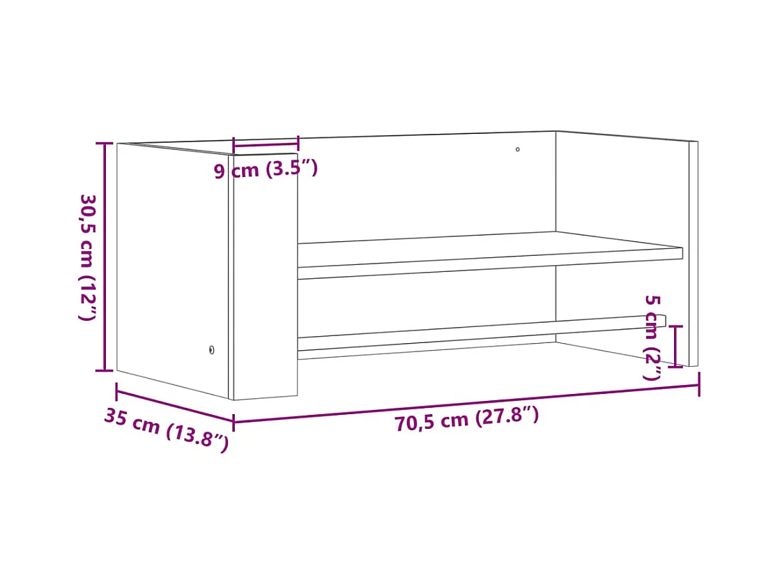 Scaffale a Muro Grigio Cemento 70,5x35x30,5cm Legno Multistrato