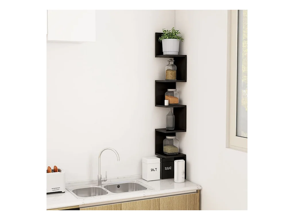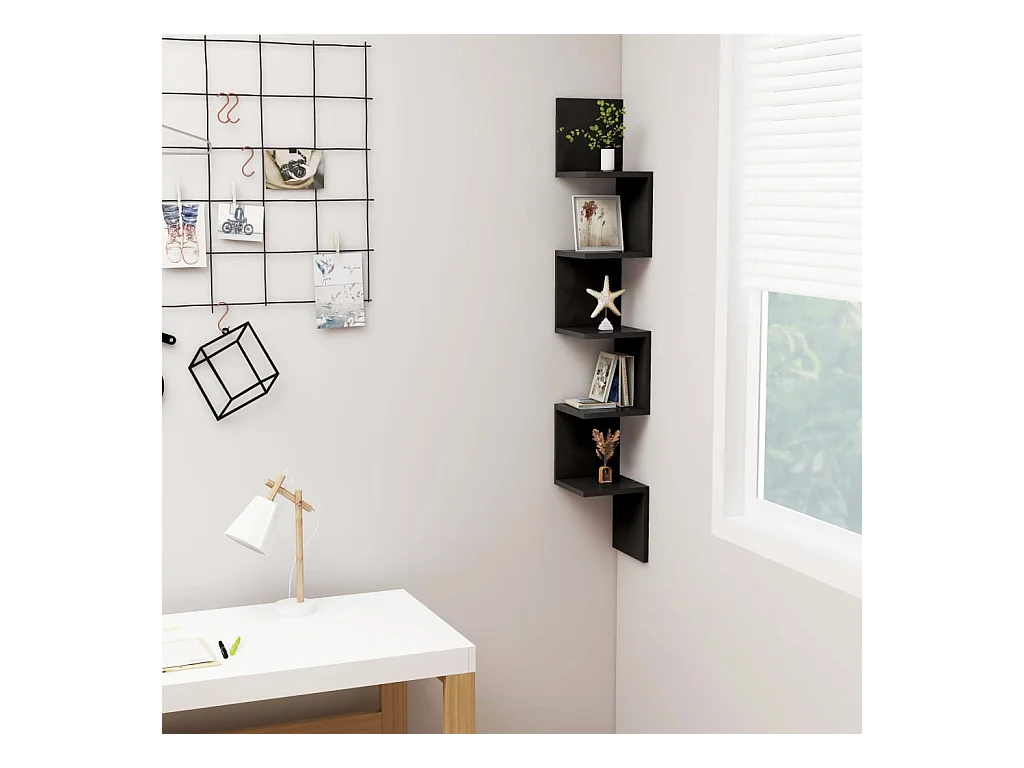 Scaffale Angolare Muro Nero 20x20x127,5cm Truciolato