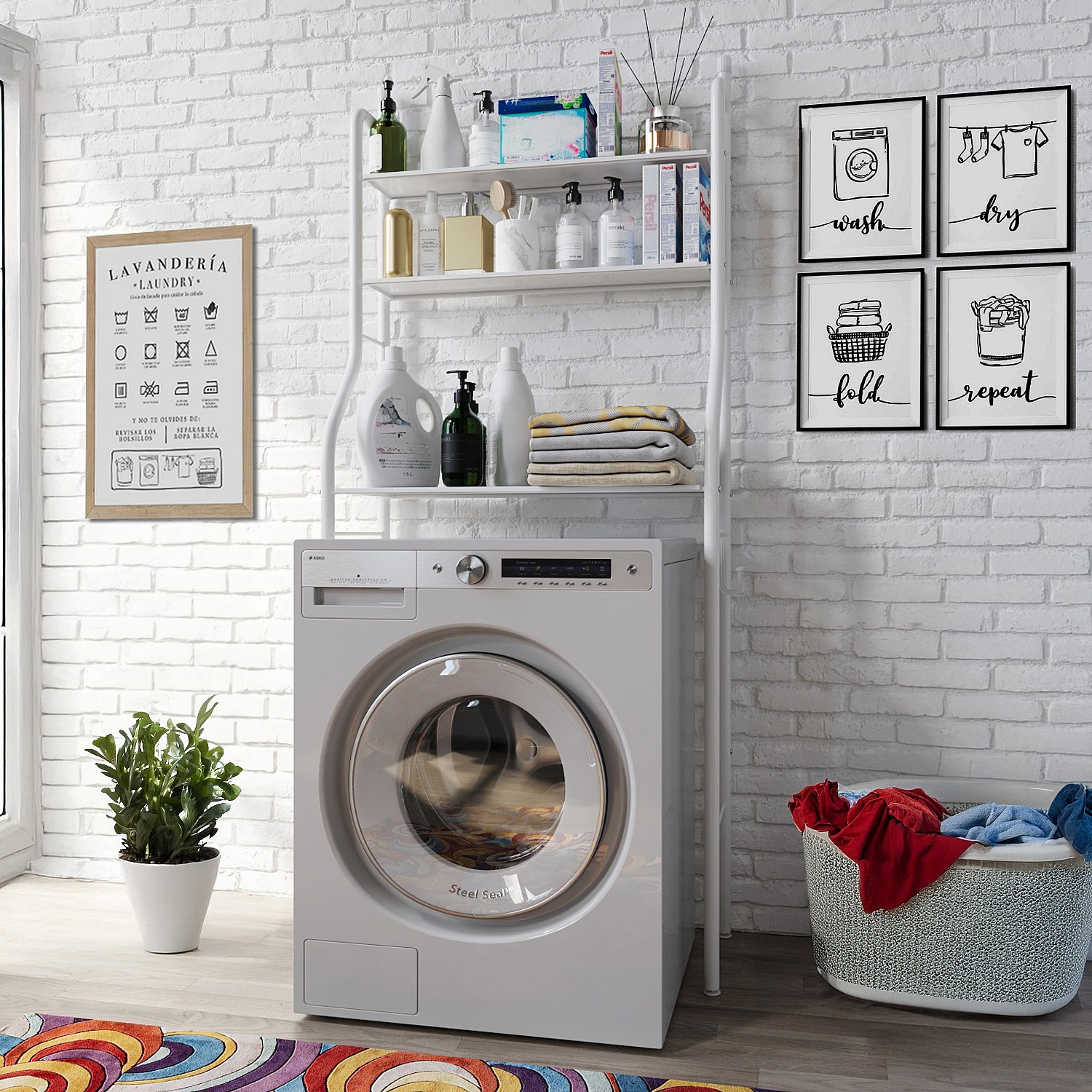 Scaffale Bagno 3 Mensole Ripiano Superiore Mobile Sopra Lavatrice Lavanderia Salvaspazio Ripiani Organizer Da Parete In Metallo 152x65x25 Cm Bianco