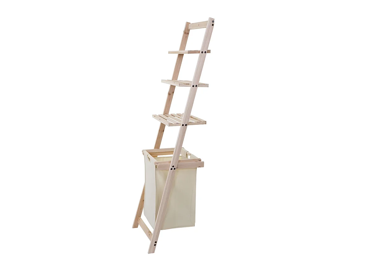 Scaffale con cesta portabiancheria MCW-B59 3 ripiani legno di abete
