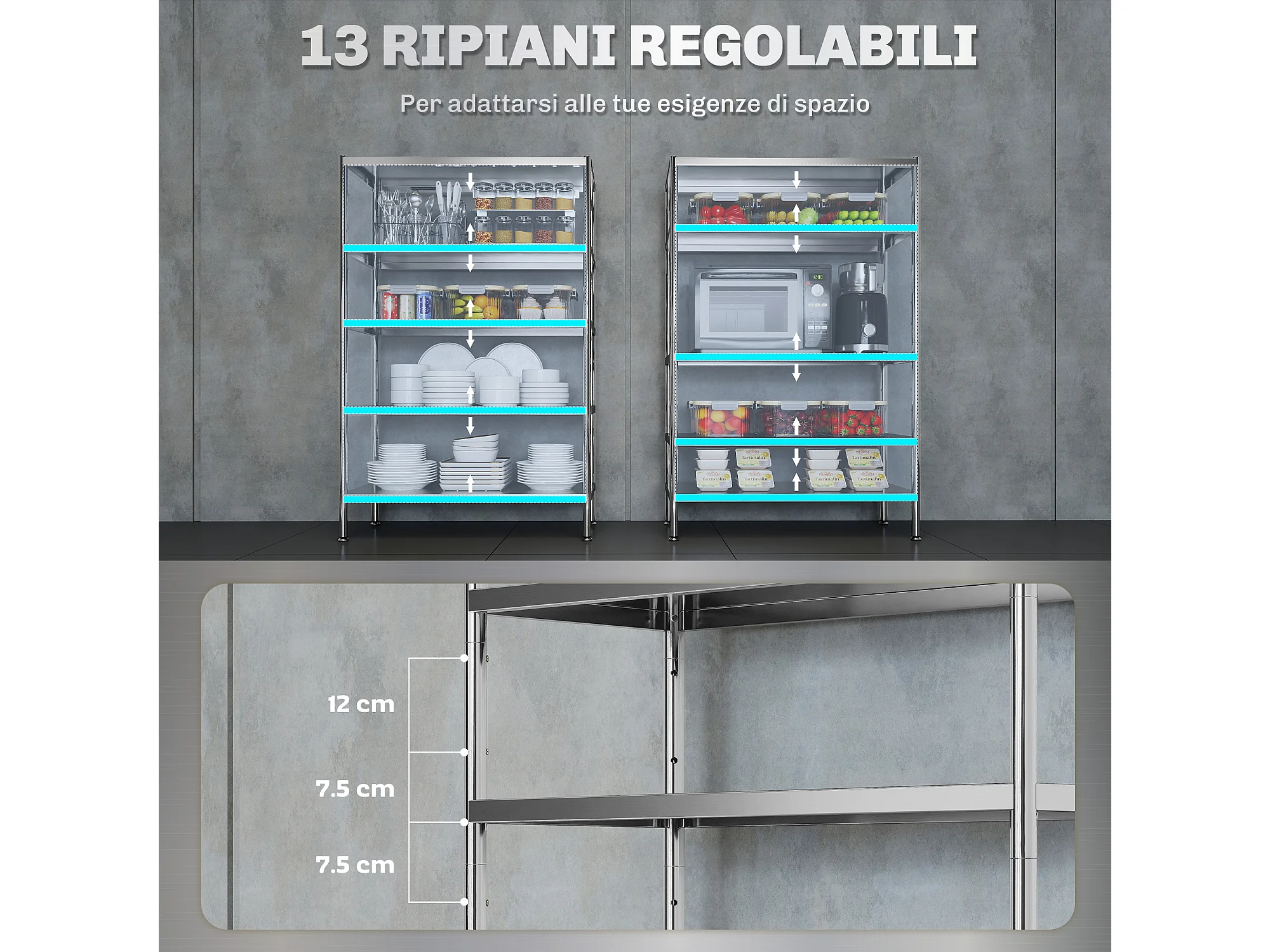 Scaffale da cucina a 5 livelli regolabili su 13 altezze diverse