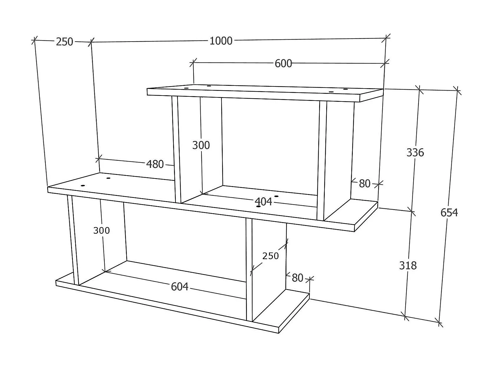 Mensola galleggiante rovere in melamina con 2 ripiani , 3,8 cm X 80 cm X 25 cm