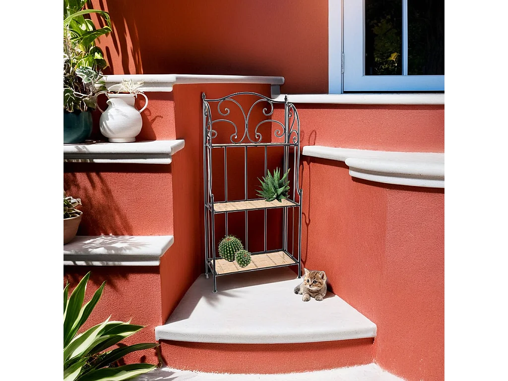 Mensola da giardino a 4 ripiani in metallo nero PAVONA