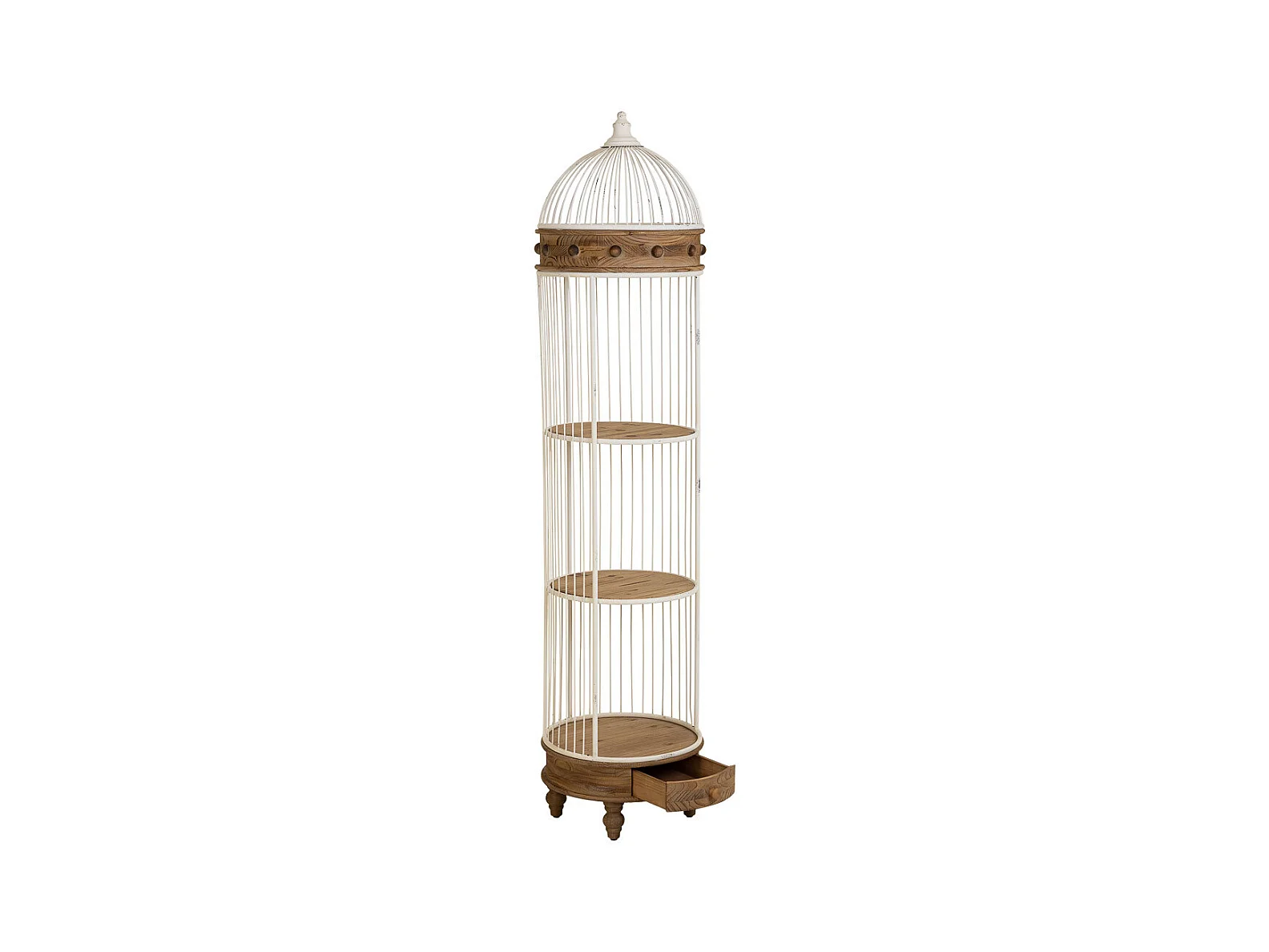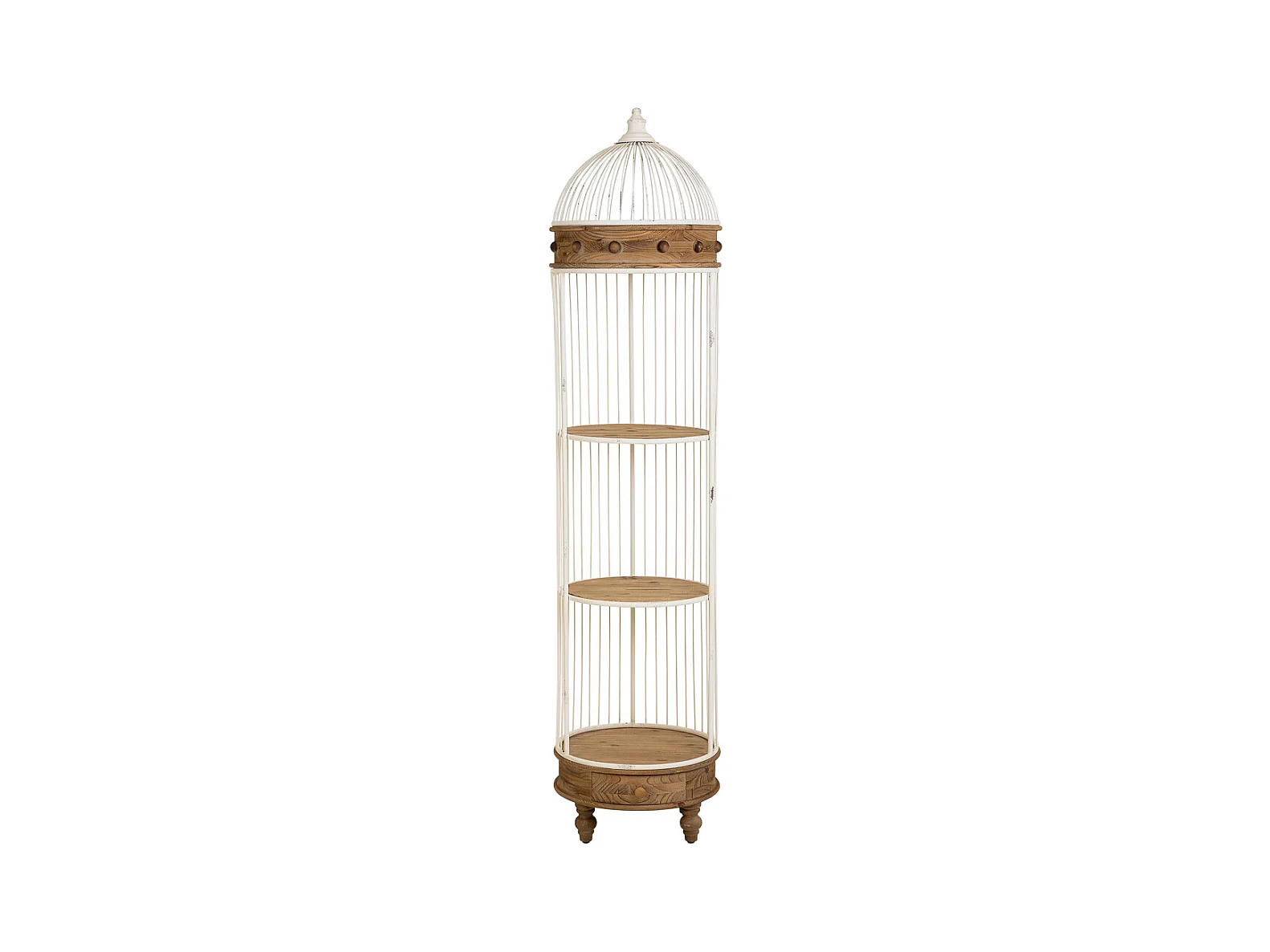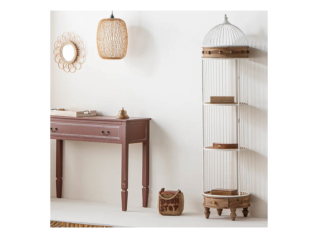 Scaffale, legno bianco e metallo, 3 ripiani, 1 cassetto 41x31x172h cm