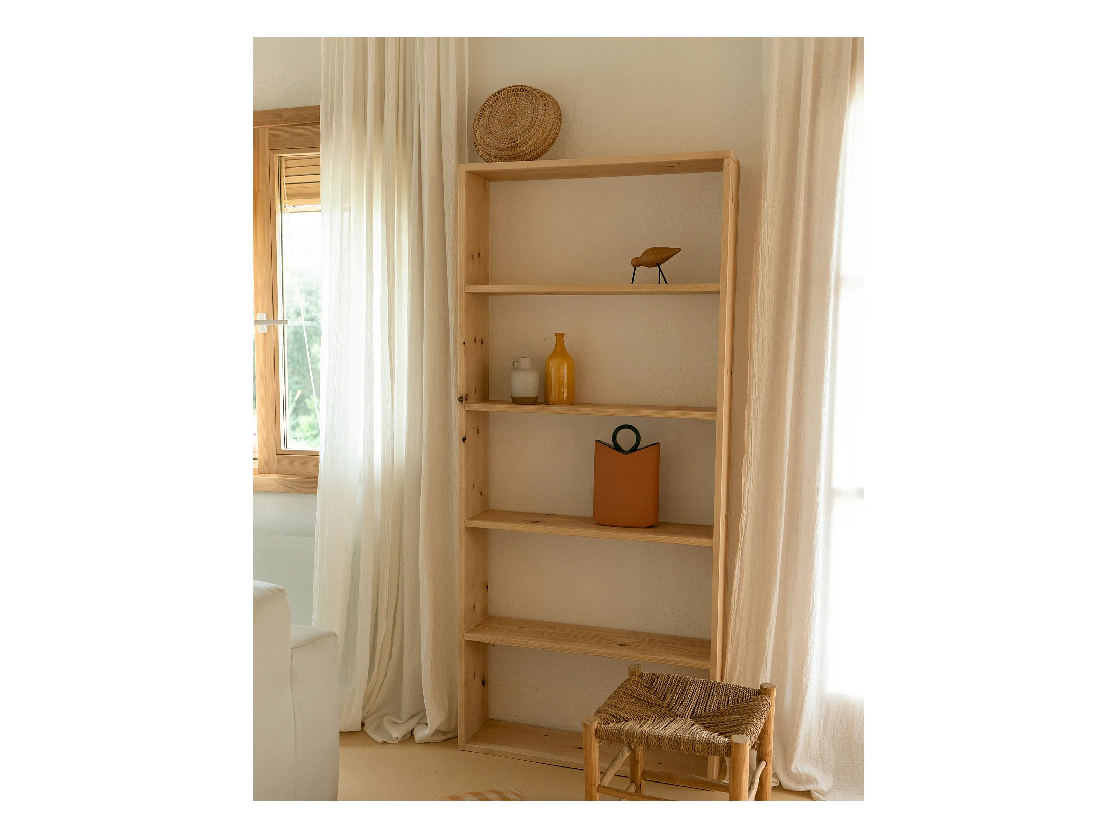 Scaffale in legno massello in tono marrone chiaro con 4 ripiani - SAURA - DECOWOOD
