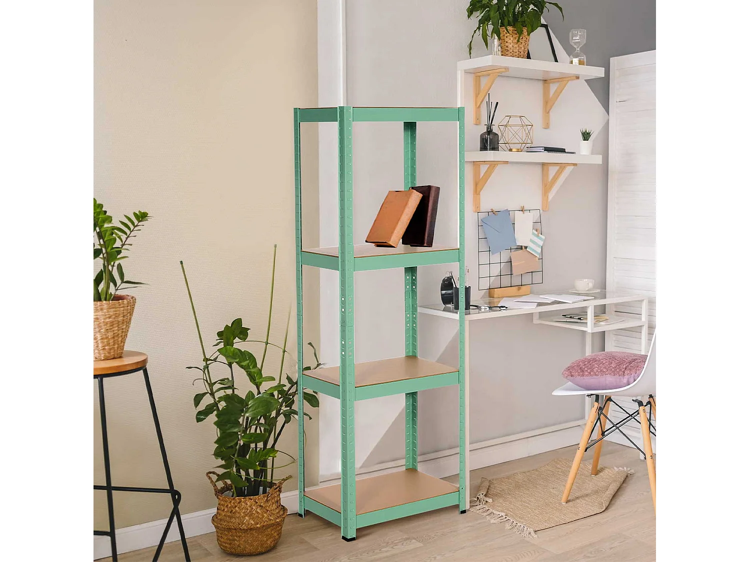 Scaffale in metallo verde con 4 ripiani regolabili 148x60x30cm 240Kg 7house