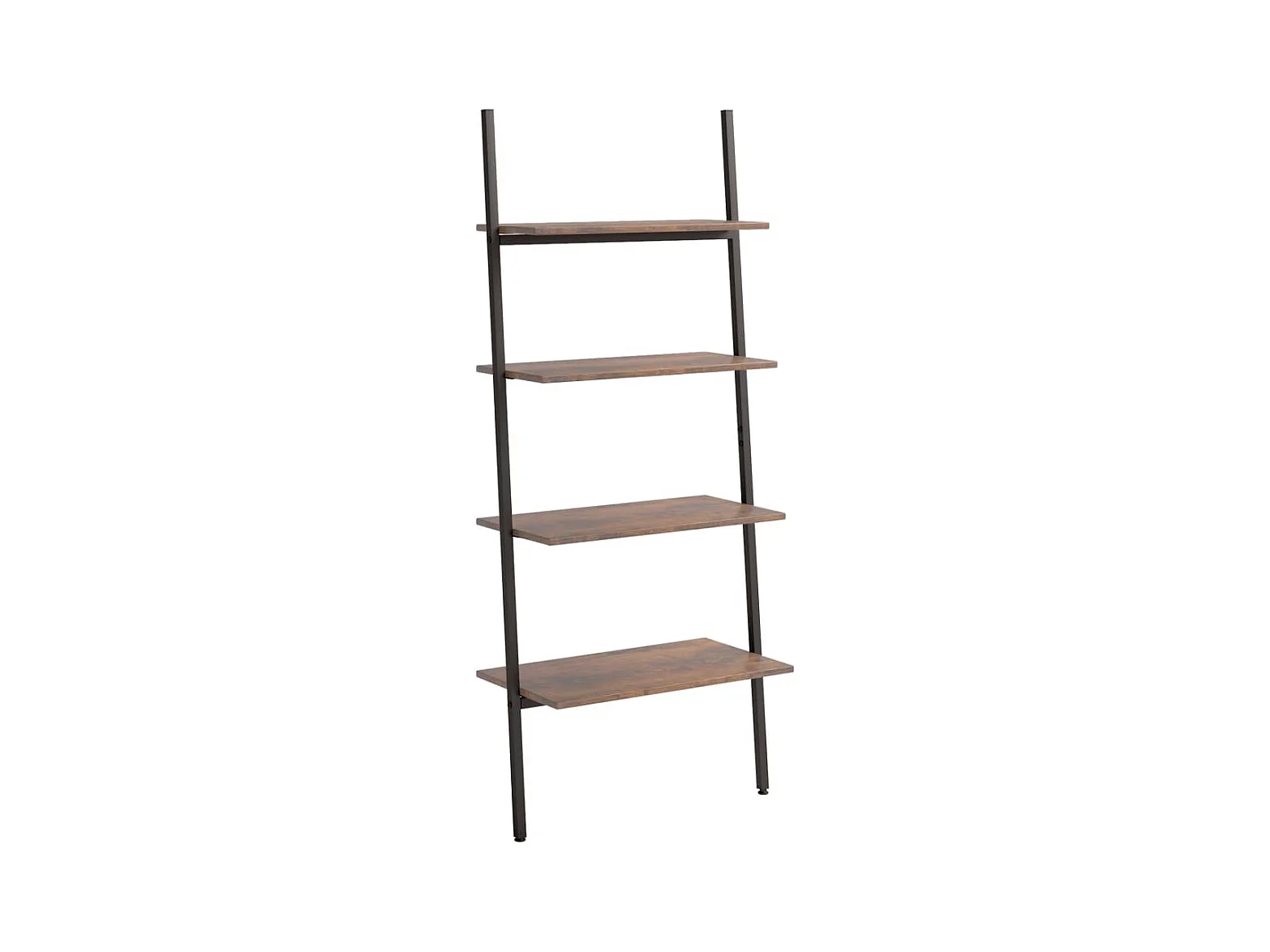 Scaffale inclinato a 4 ripiani marrone scuro e nero 64x34x150,5 cm