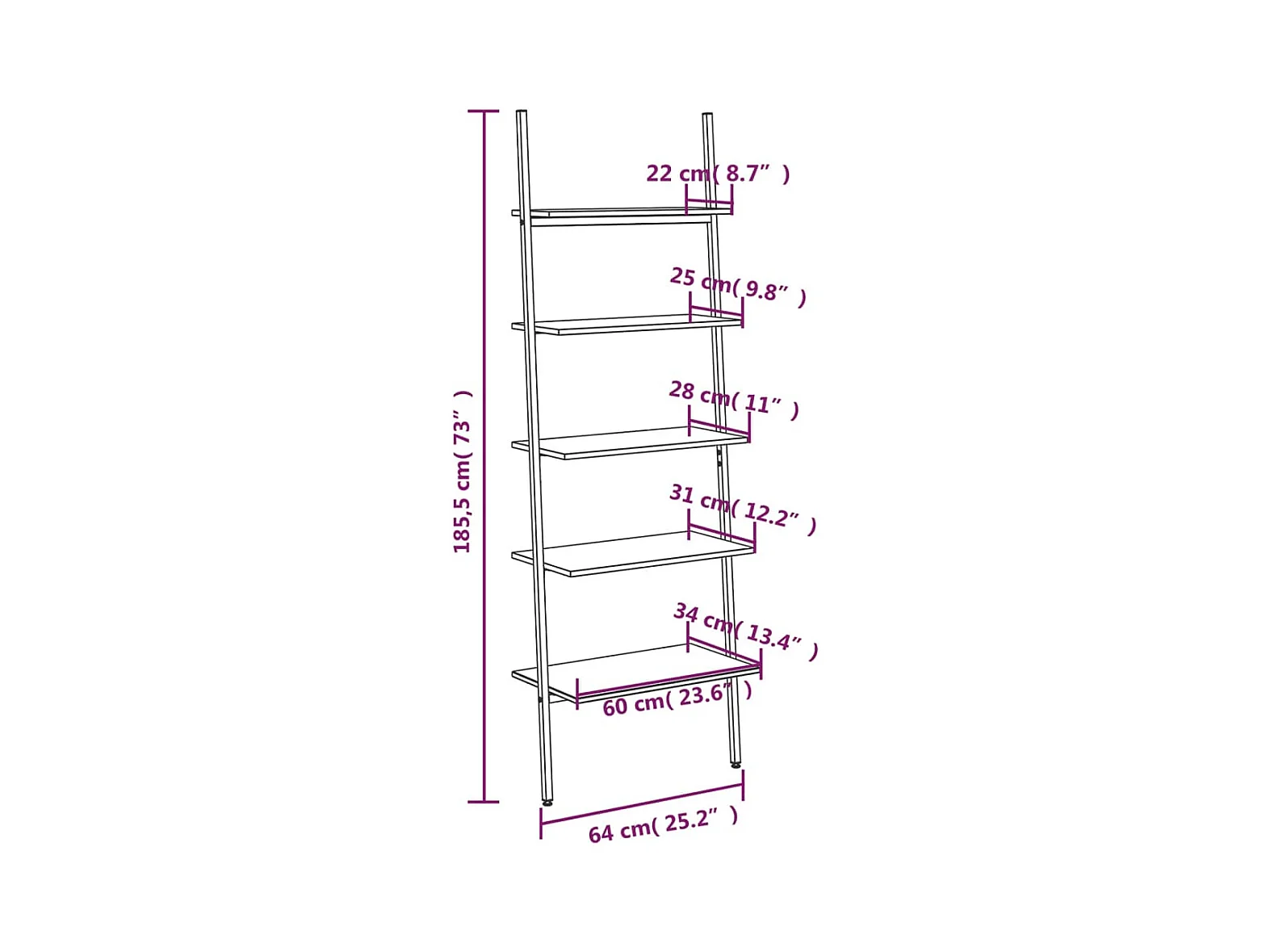 Mensola inclinata a 5 ripiani marrone chiaro e nero 64x34x185,5 cm