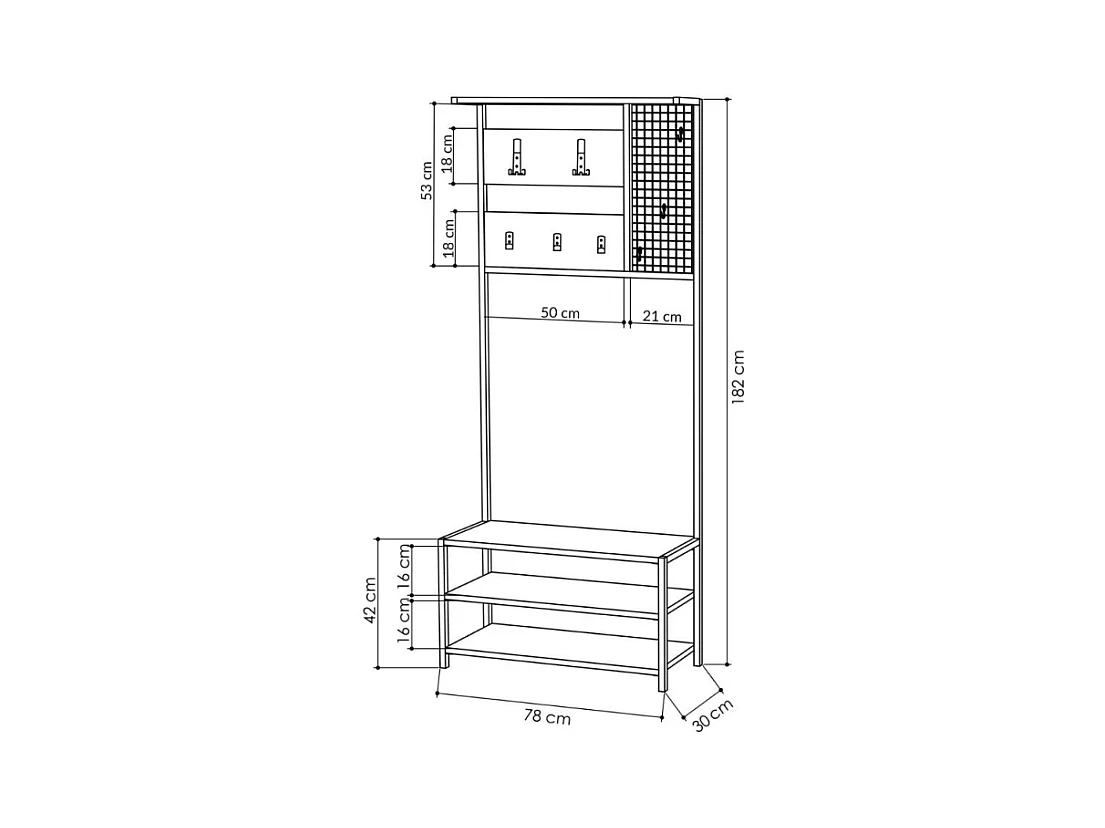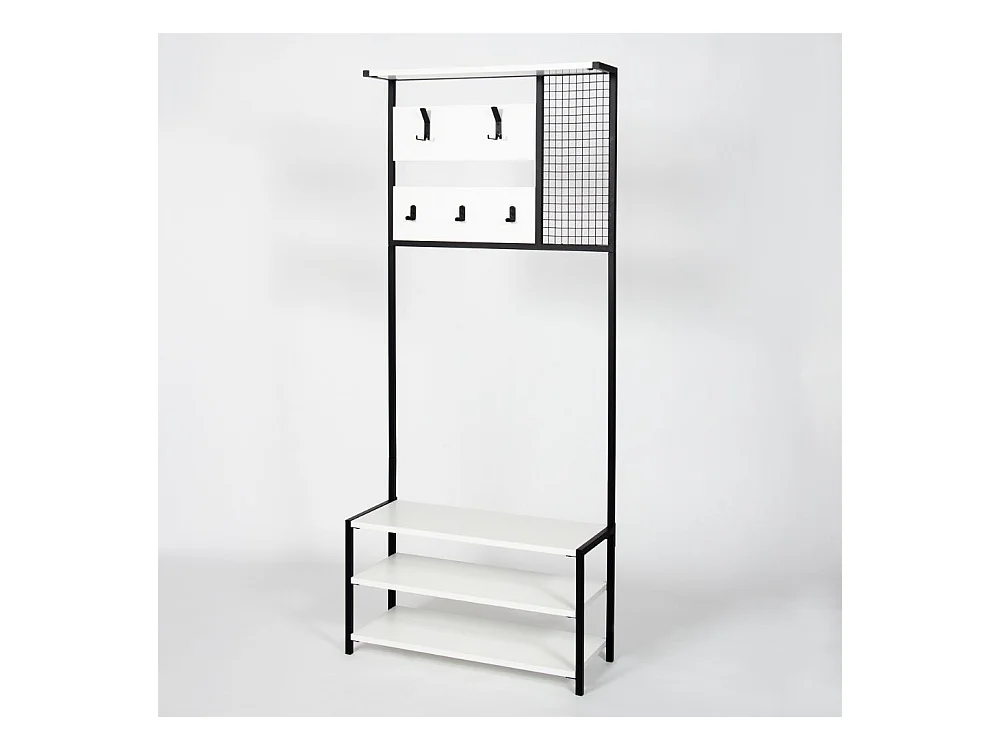 Scaffale ingresso appendiabiti in metallo nero con particolari bianco Nomad