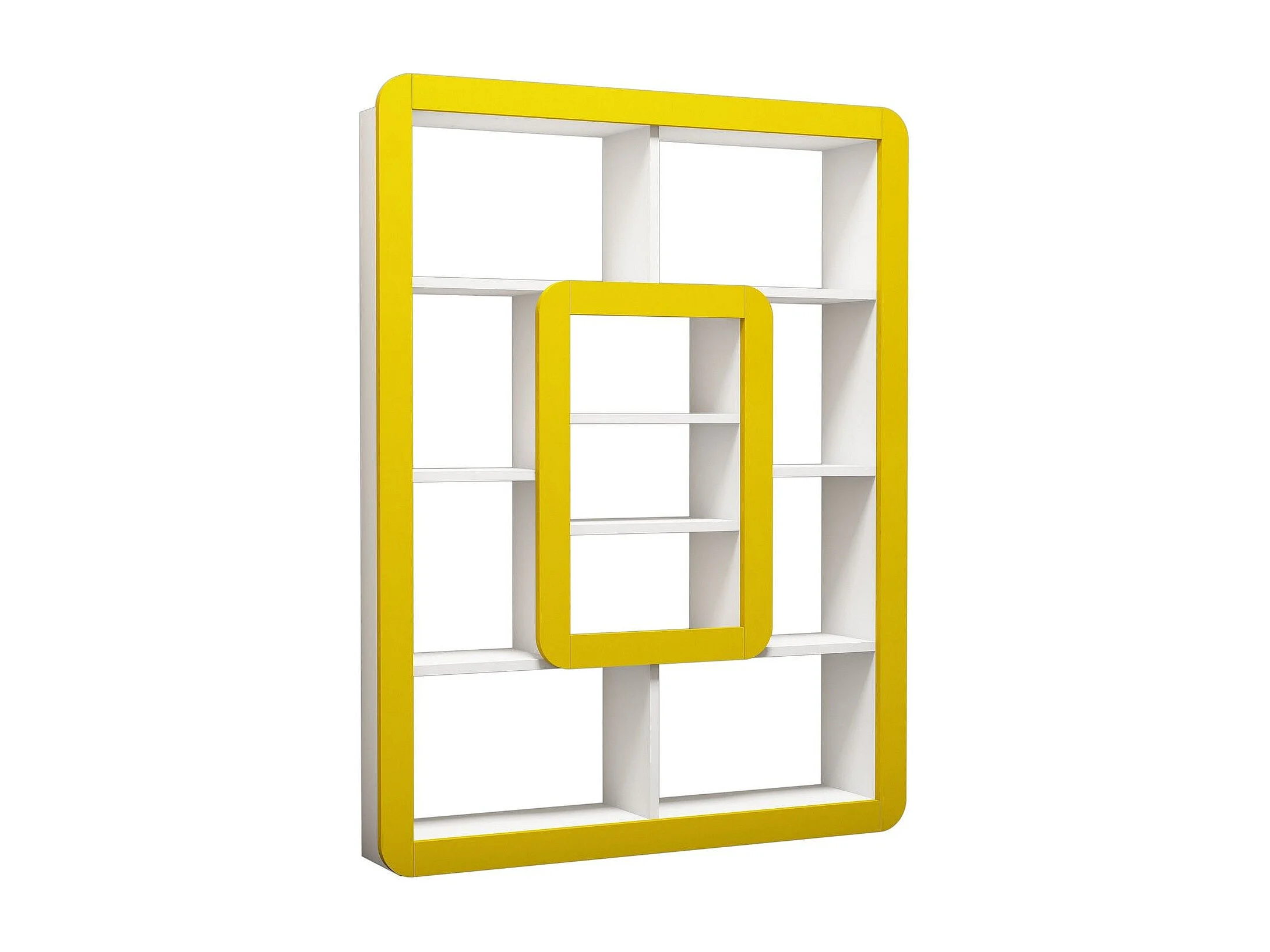 Libreria Bohemian – 108,4 x 140 x 21,8 cm – Bianco e Giallo – Pannello truciolare rivestito in melaminico