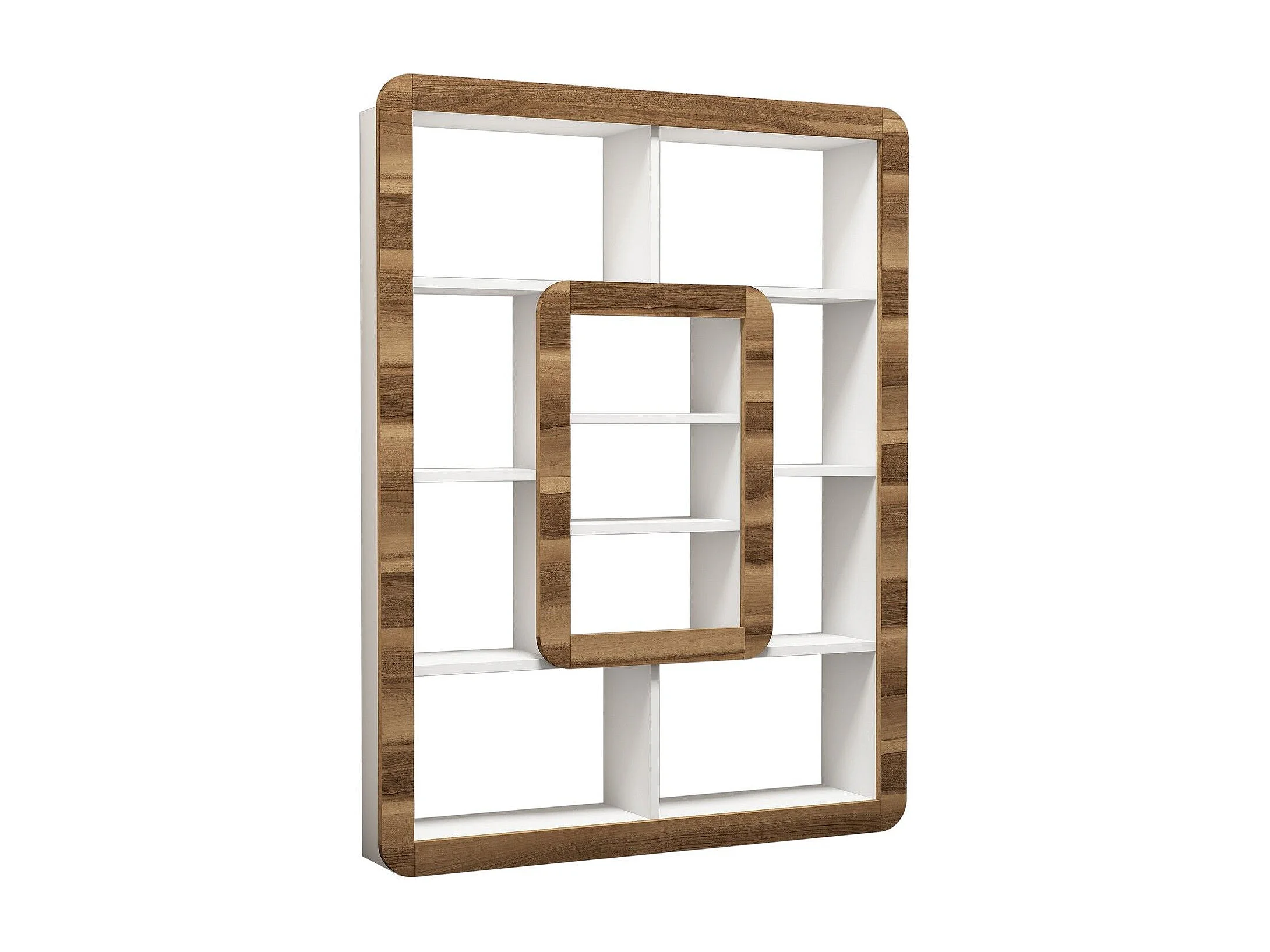 Libreria moderna – 108,4 x 140 x 21,8 cm – Bianco e noce – Pannello truciolare rivestito in melaminico