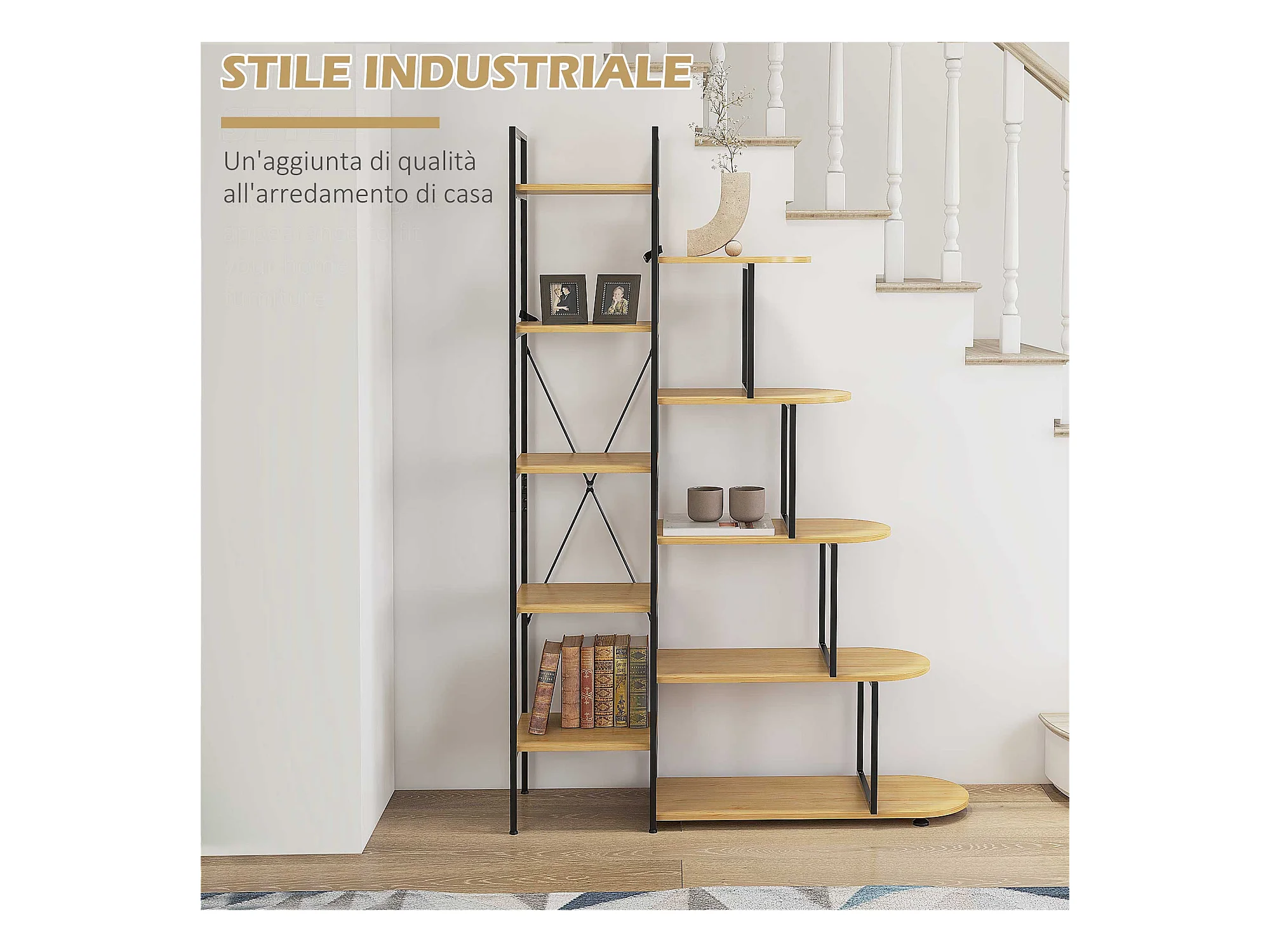 Scaffale libreria a 10 livelli in truciolato e acciaio