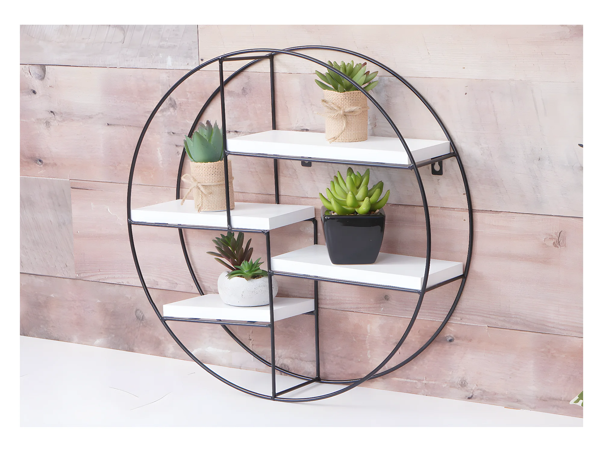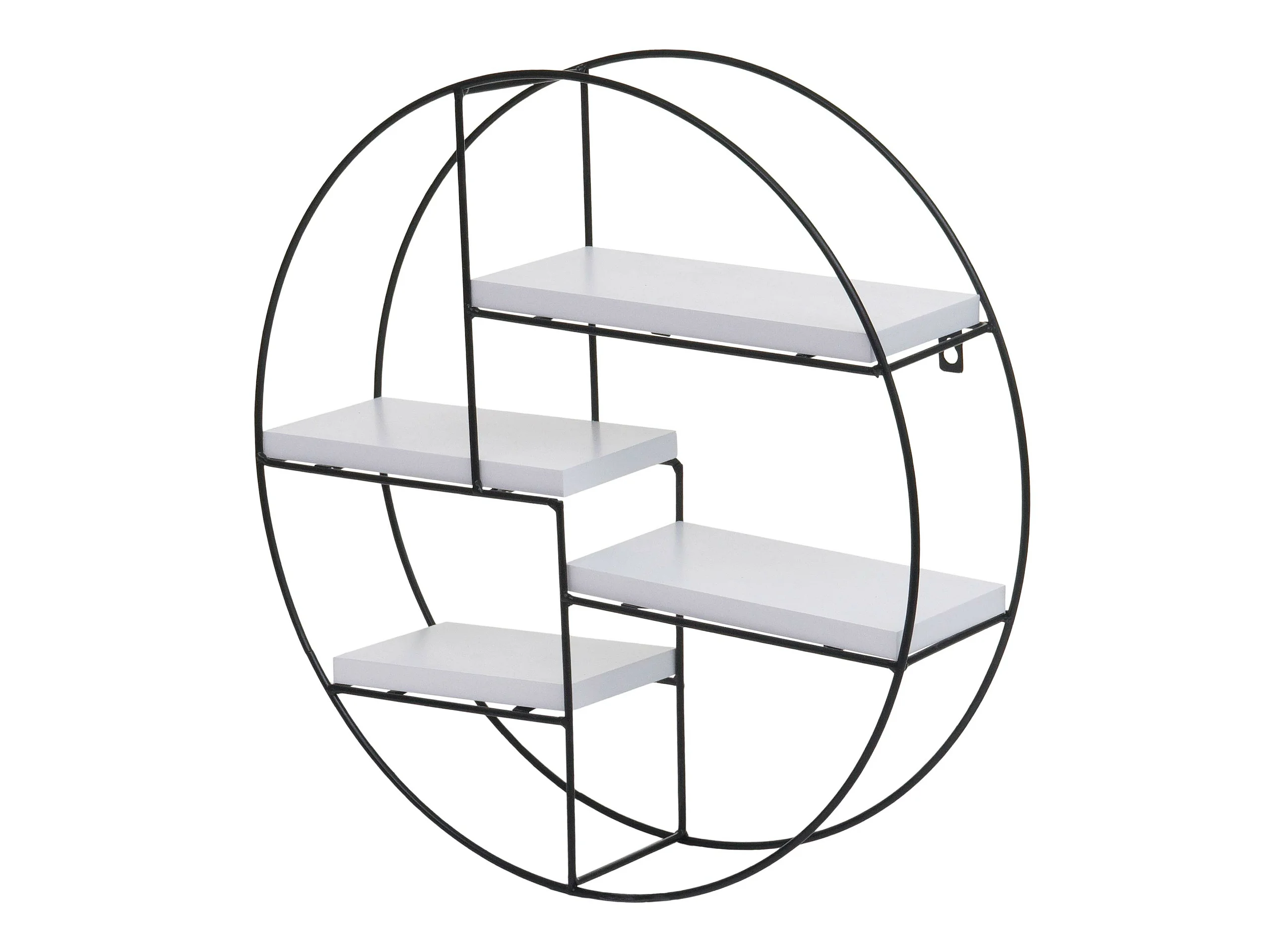 Scaffale mensola portaoggetti pensile 4 ripiani MCW-K76 rotondo 45x45x11cm ferro verniciato legno bianco
