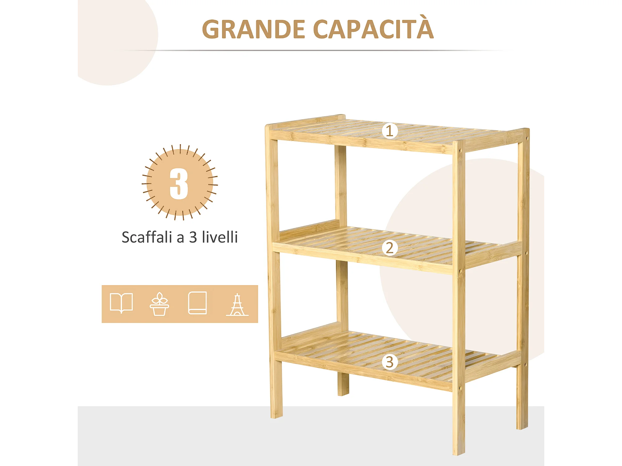 Scaffale multiuso a 3 ripiani salvaspazio in bambù mensola per bagno