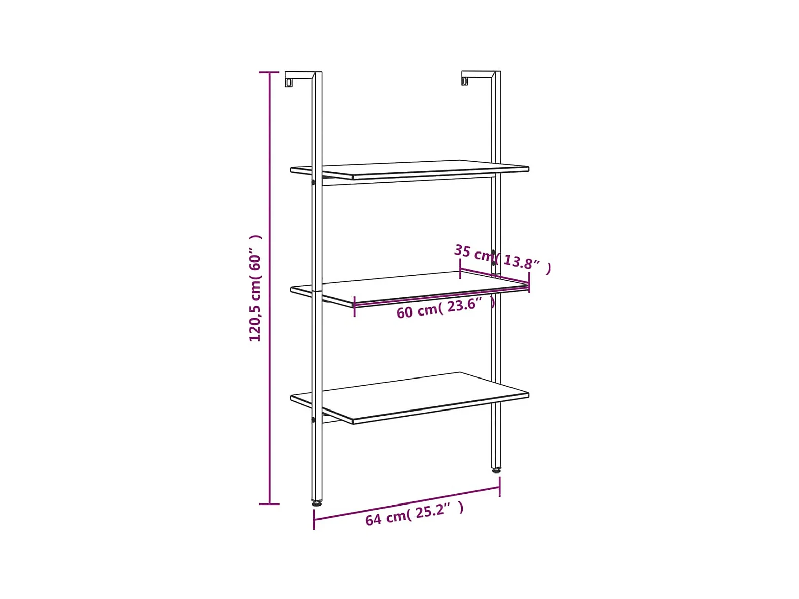 Scaffale Pendente a 3 Livelli Nero 64x35x120,5 cm