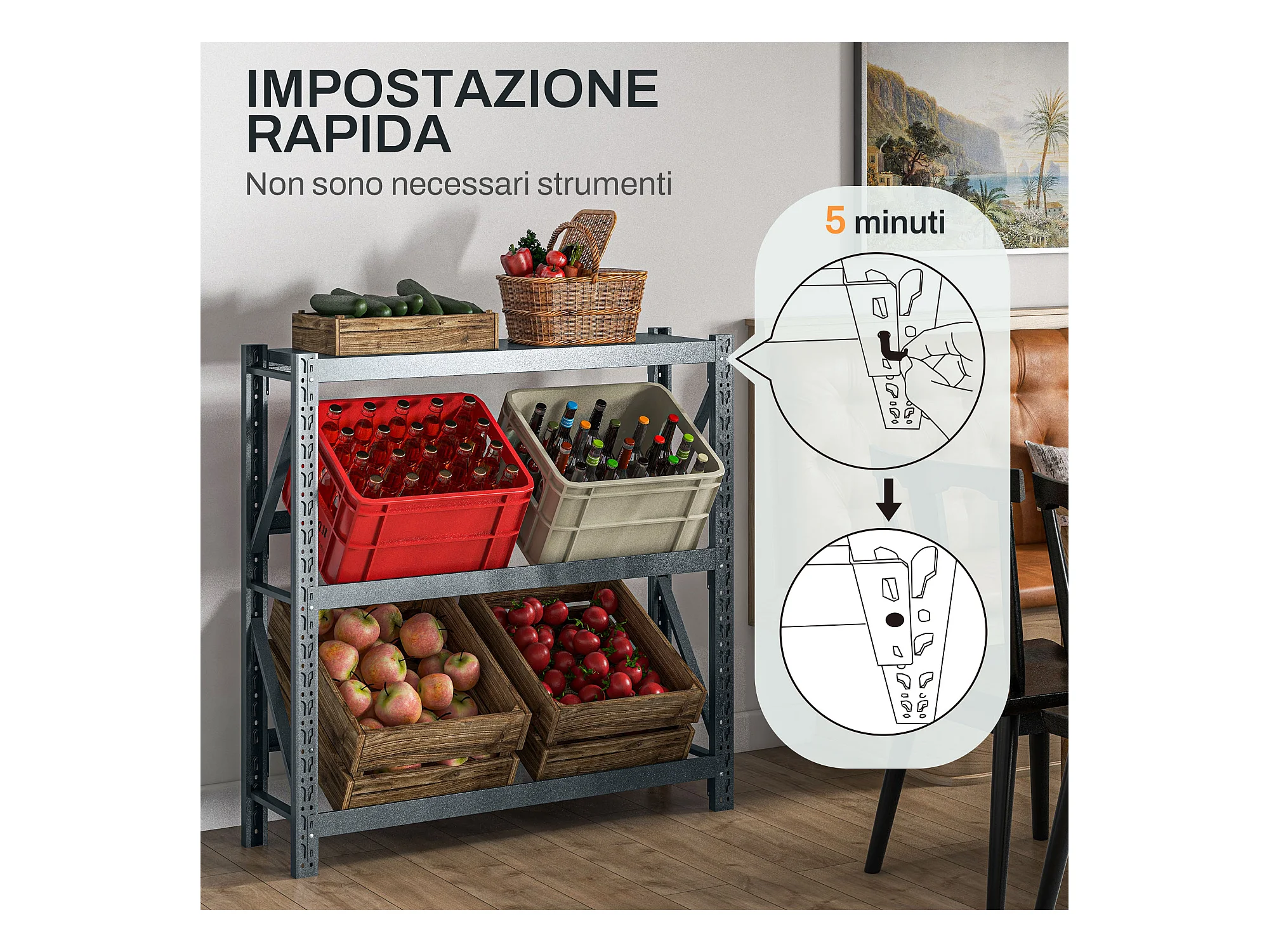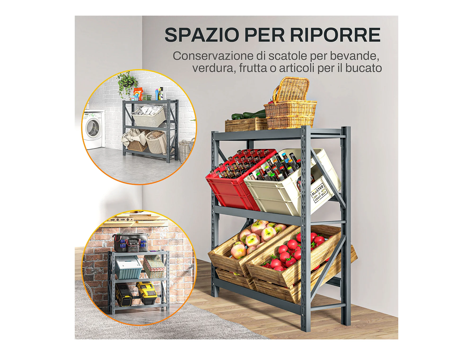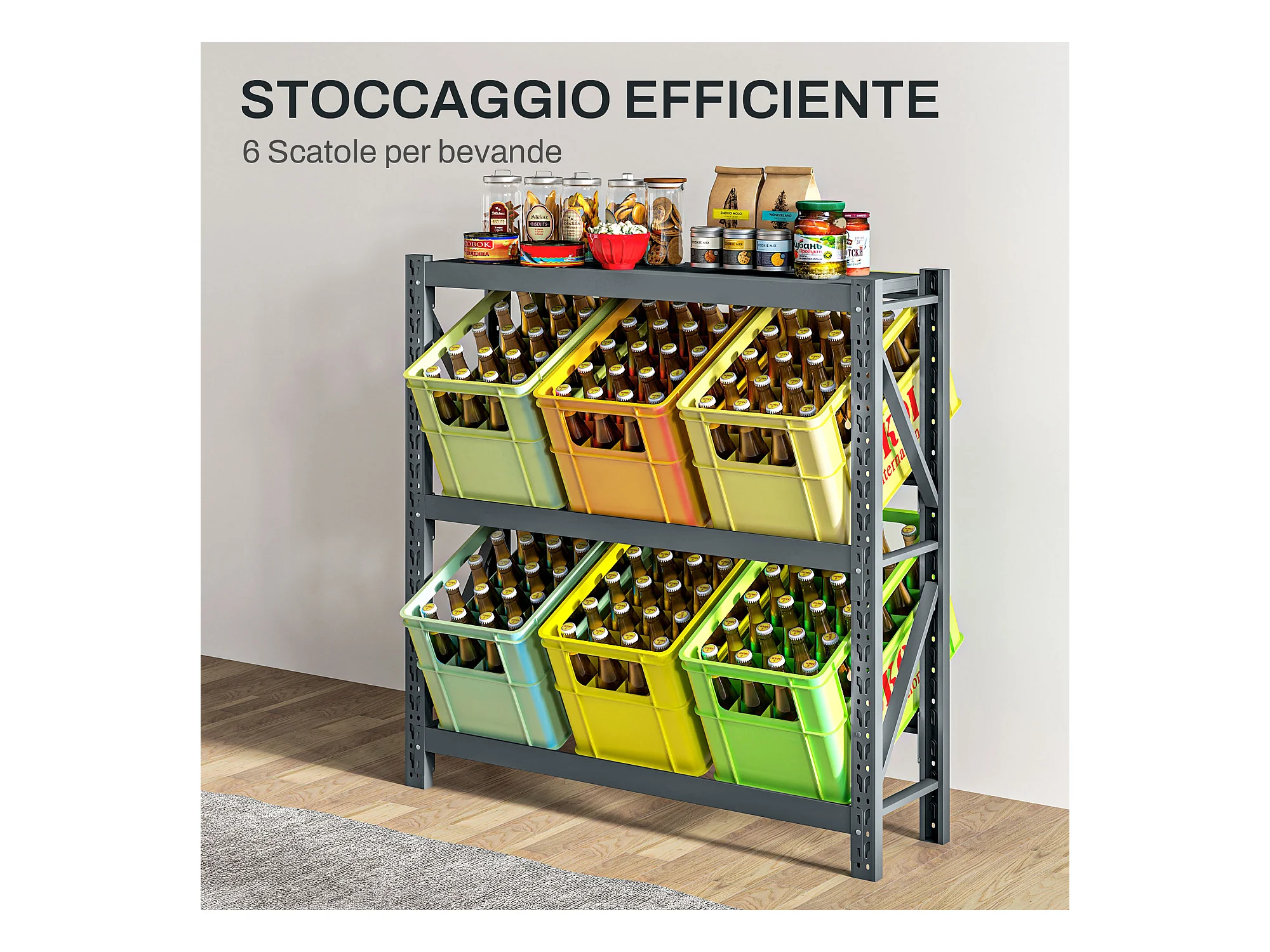 Scaffale per 6 casse di bevande a 3 livelli regolabili grigio