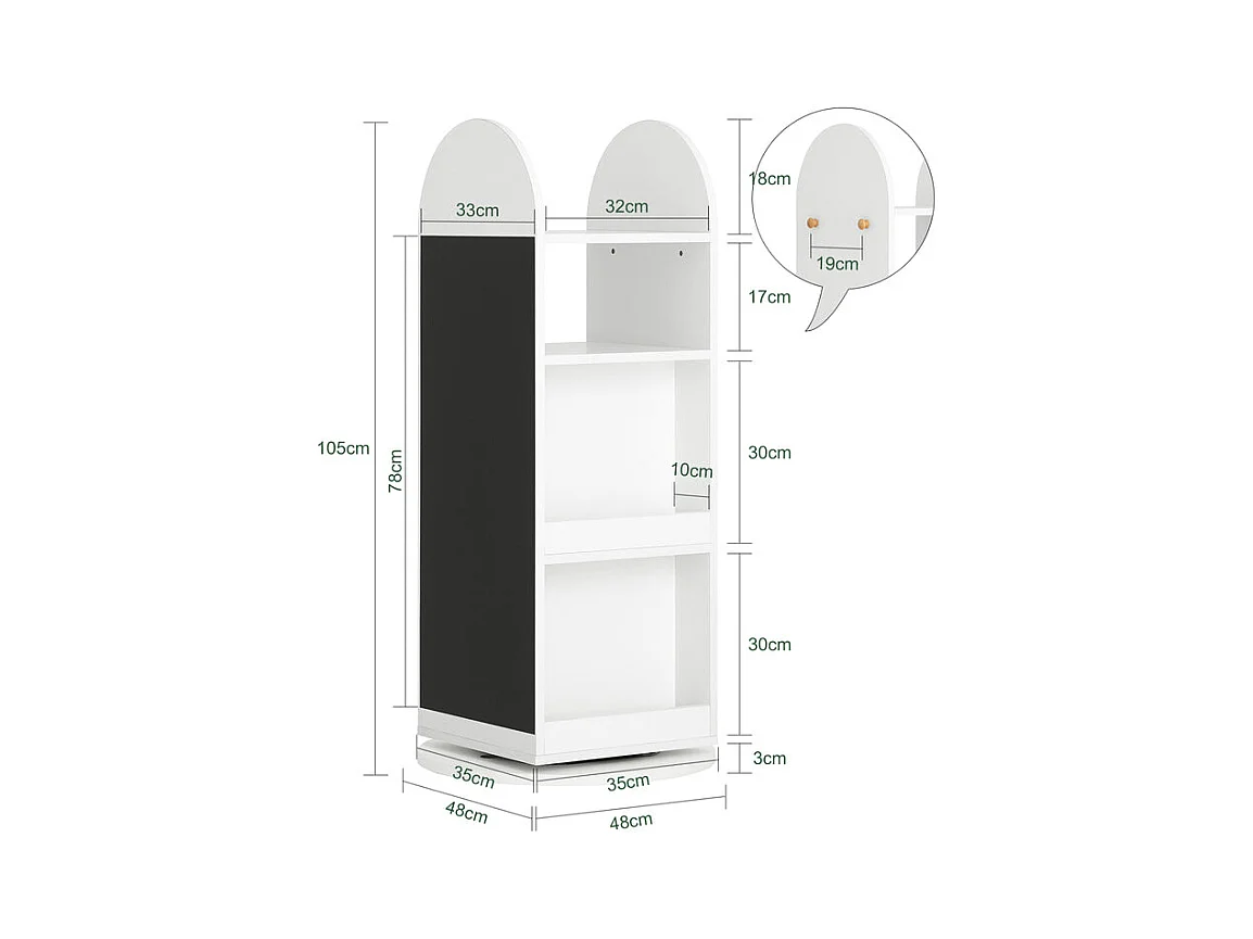Scaffale per giocattoli Libreria con lavagna per bambini Scaffale portaoggetti Scaffale girevole 360 gradi liberamente ruotabile 48x48x105cm KMB64-W SoBuy