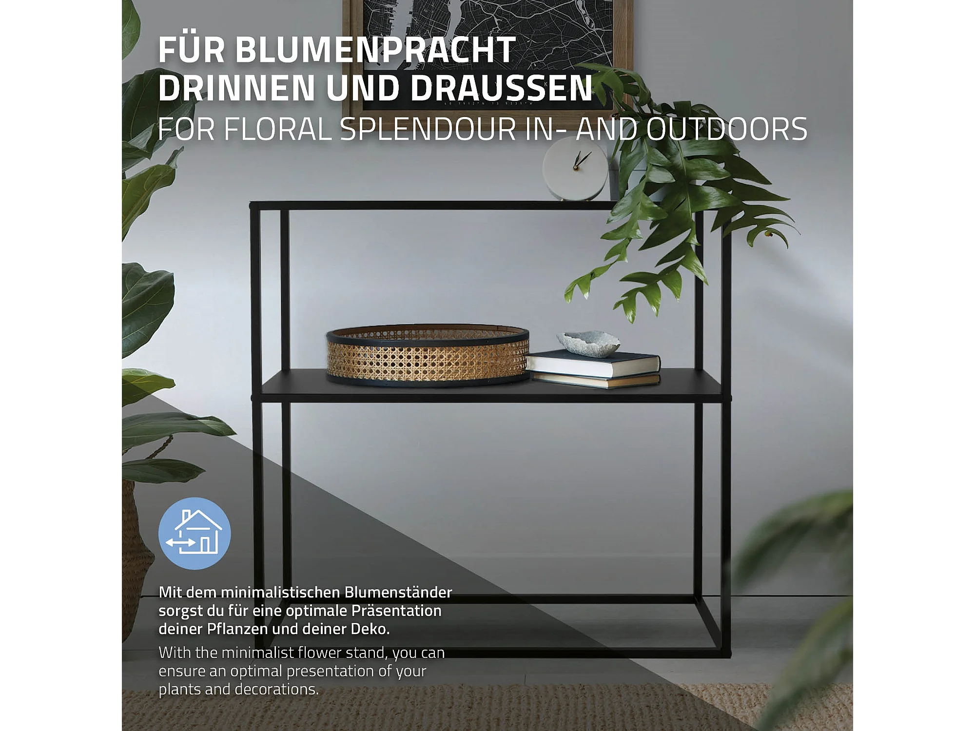 2-stöckiges Pflanzenregal, Metall, modernes Design, schwarz (60x25x70 cm)