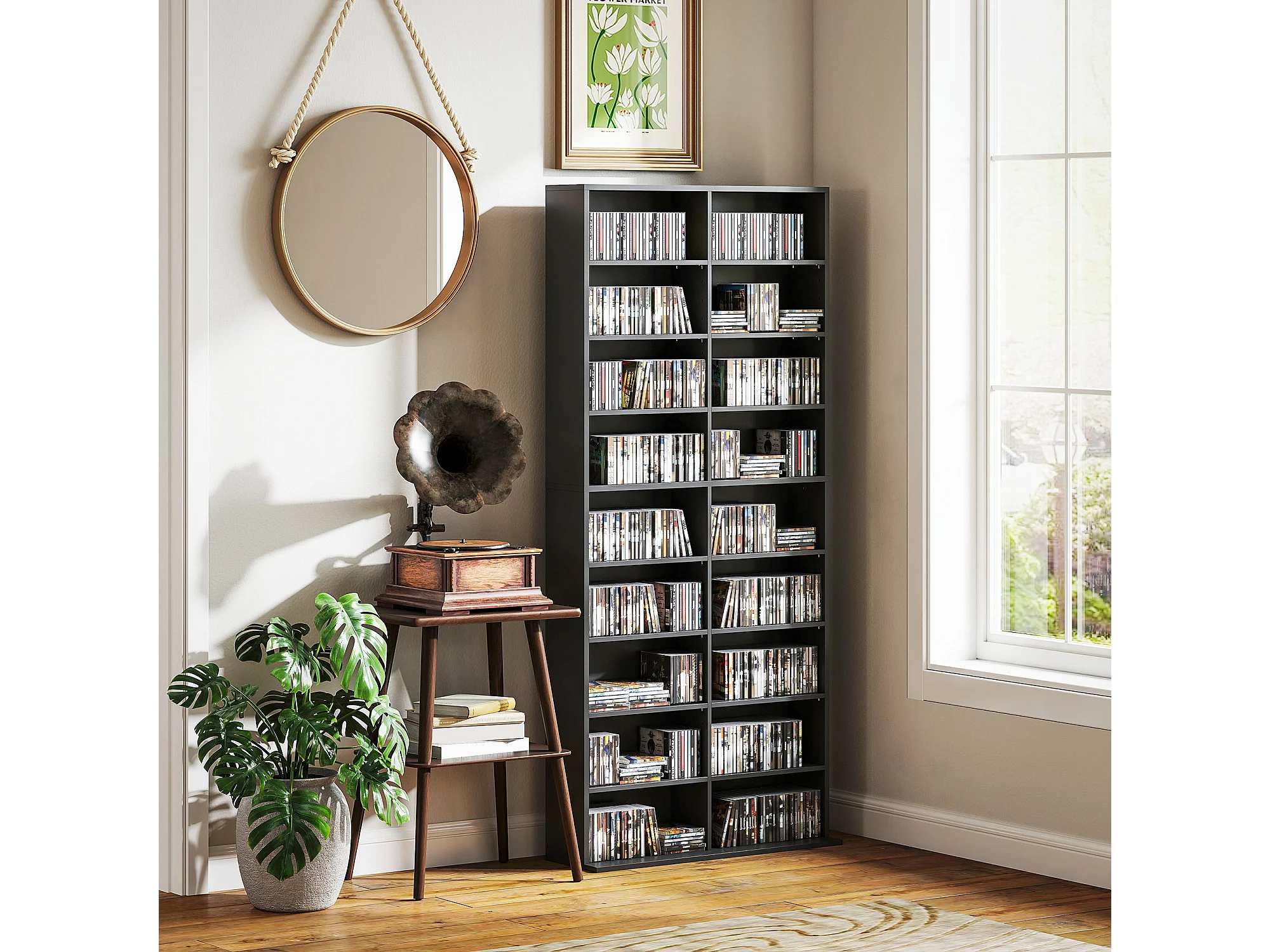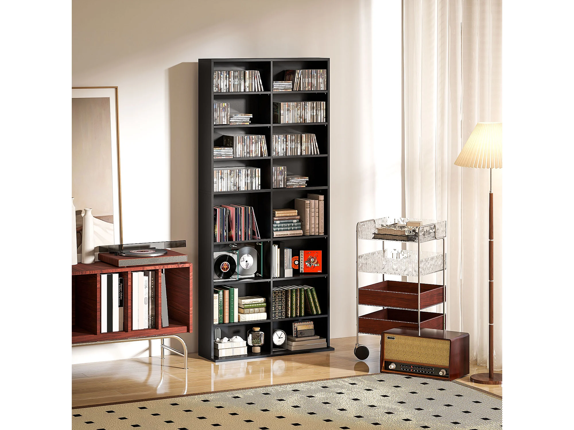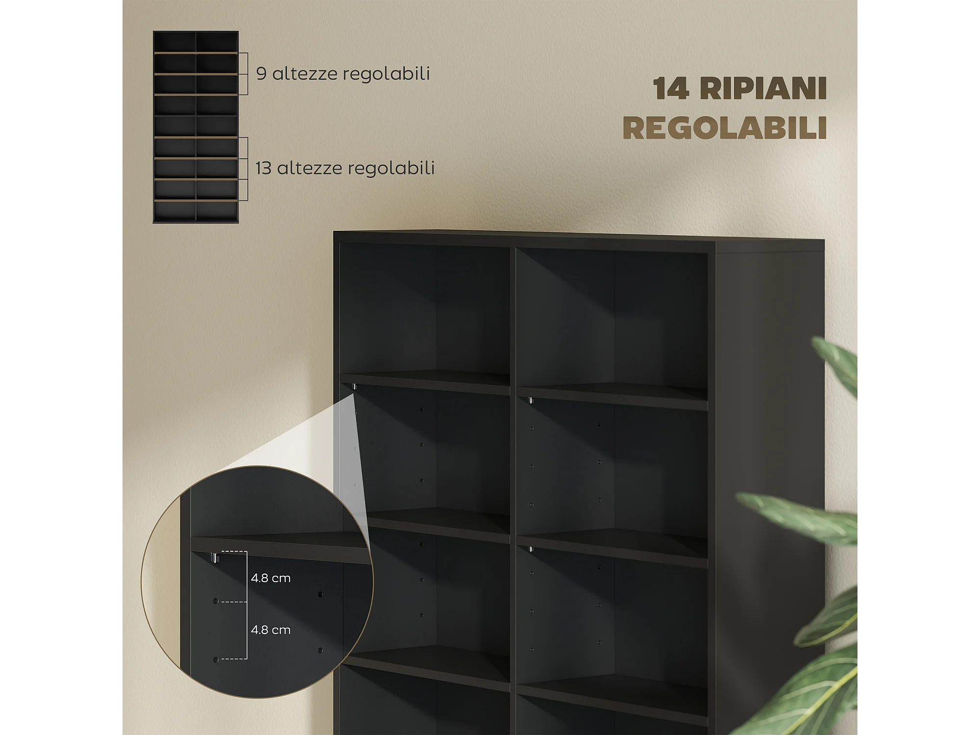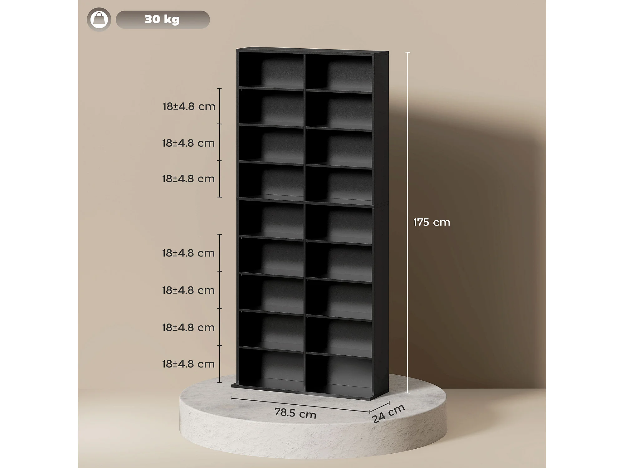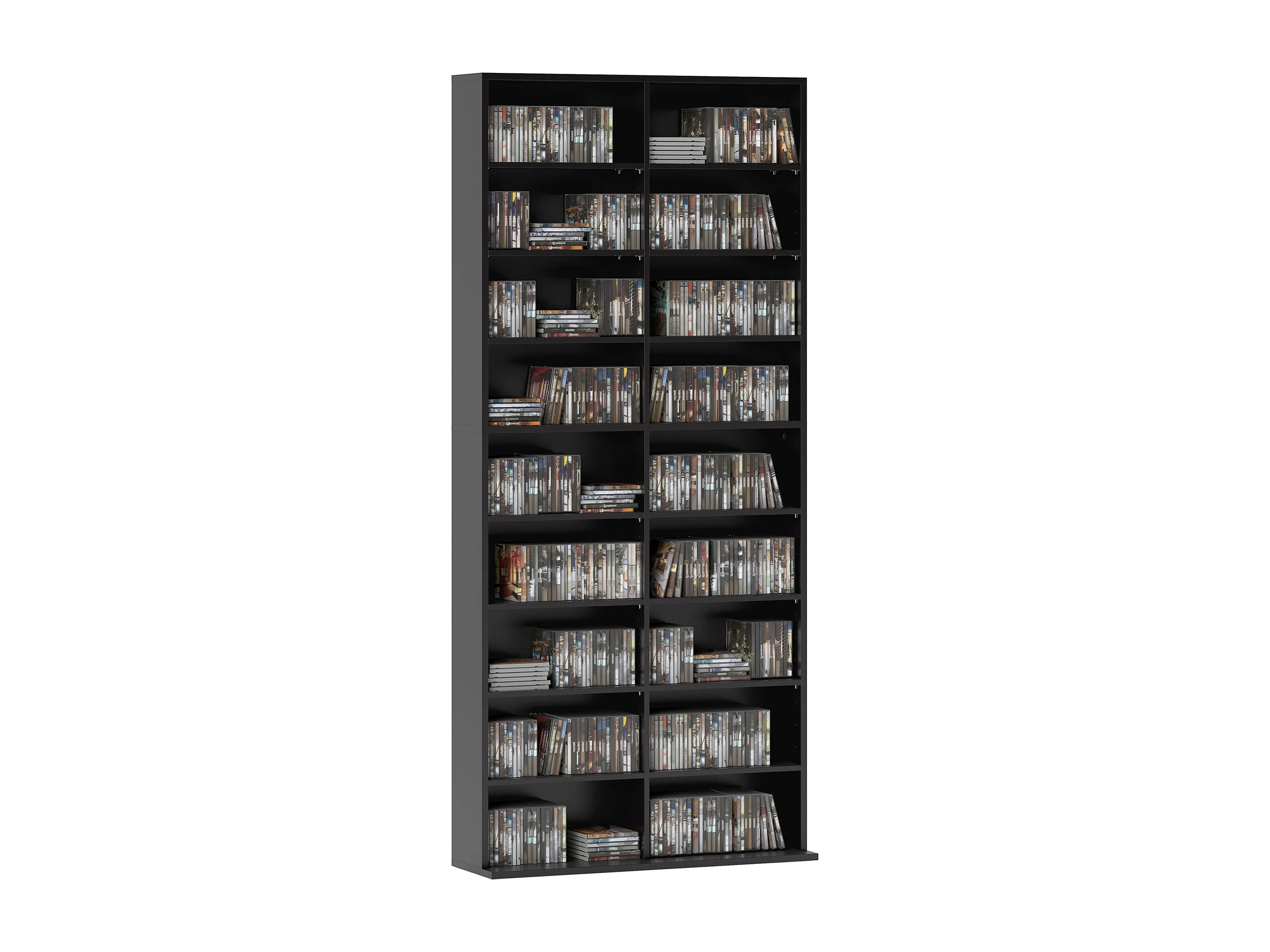 Scaffale porta cd con 14 ripiani regolabili in legno nero
