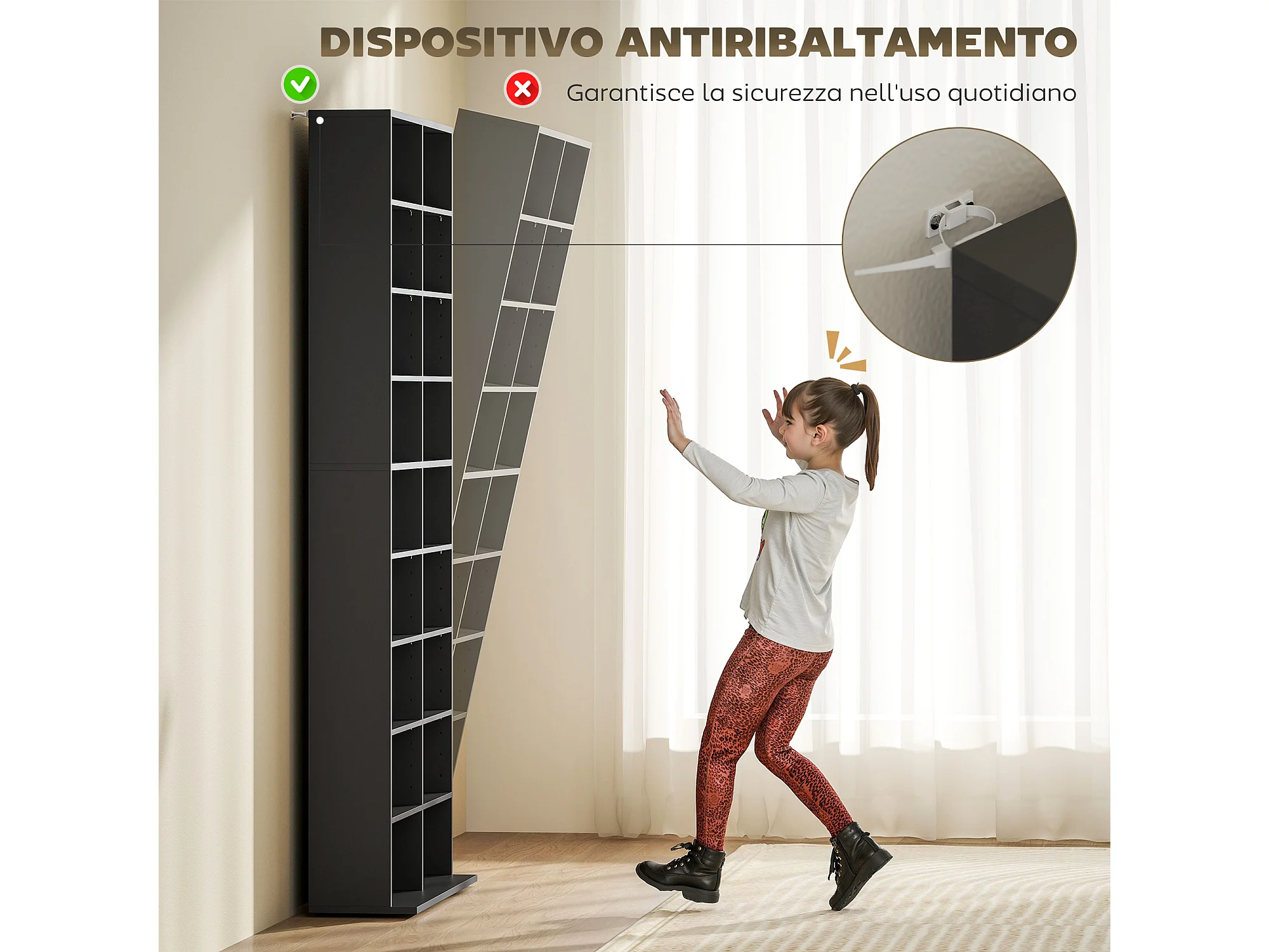 Mobile libreria a 16 ripiani per 720 cd in legno 106.5x24x123.7cm nero